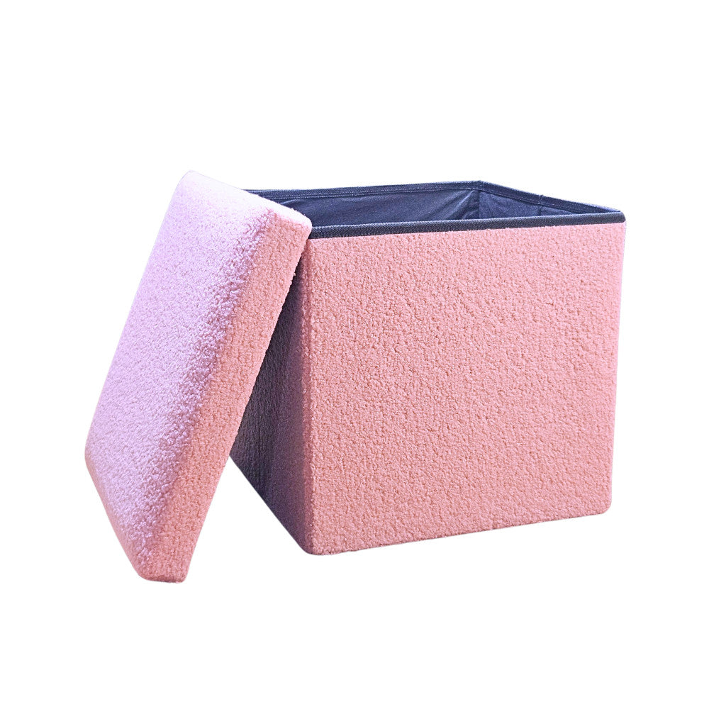 12" Pink Boucle Cube Storage Ottoman