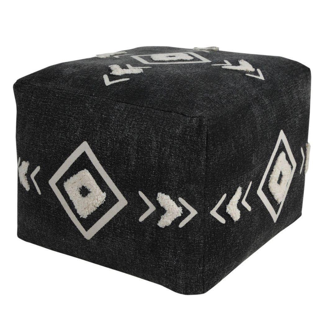 18" Black Cotton Geometric Pouf Ottoman