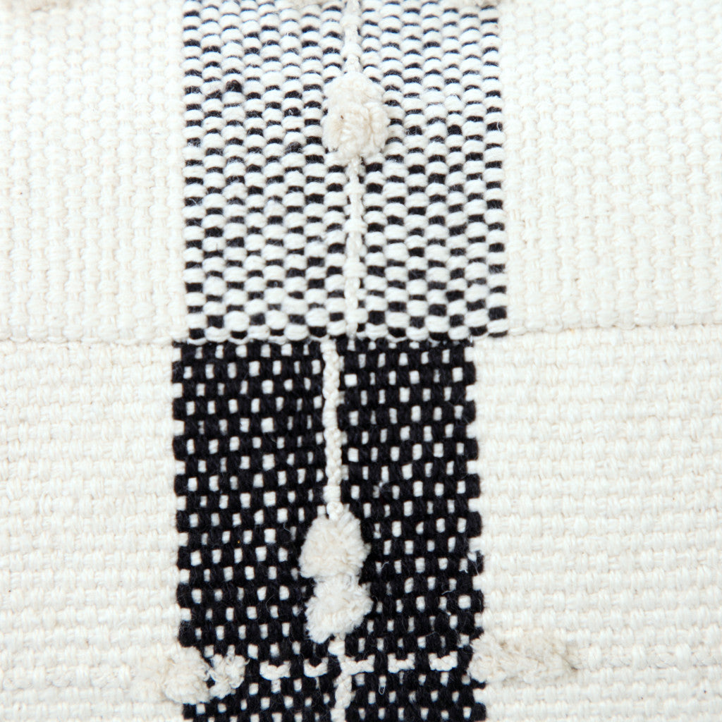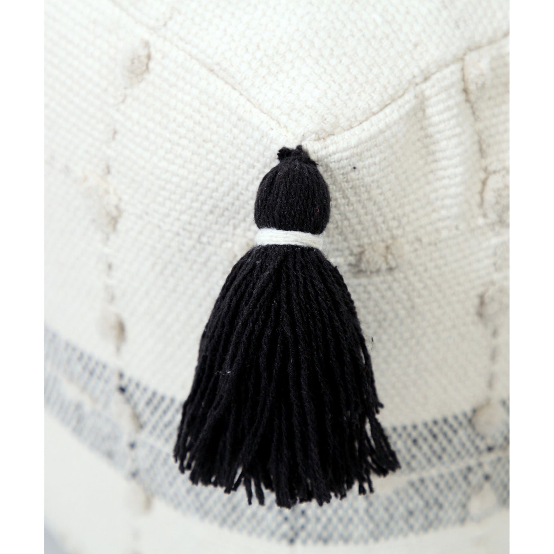 Add a good-looking decorative accent to your space that is also practical for seating. Add chic style to your space with this fun pouf that not only looks cool but can be a great footrest or extra seat when needed. Expertly upholstered with padding and soft 100% cotton in a striped pattern, this ottoman is as comfortable as it is good looking. Ottomans are multi-functional additions to your space that add fashion and practical value. 14-inch h x 18-inch w x 18-inch d.