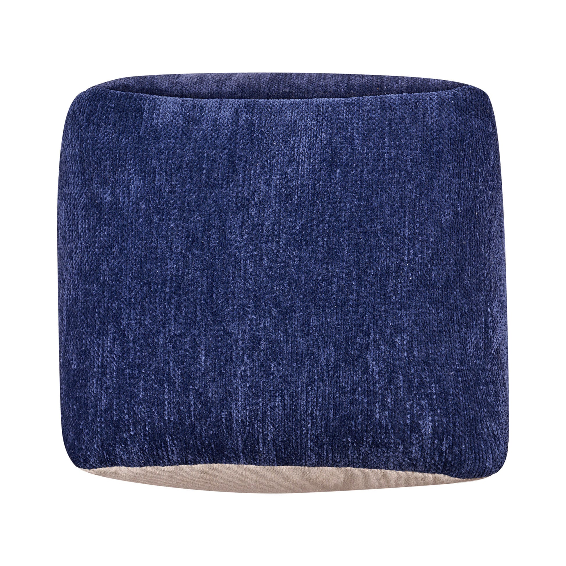 Practicality and fashion mix together with this handy 18-inch blue chenille cube pouf ottoman. Add chic style to your space with this fun pouf that not only looks cool but can be a great footrest or extra seat when needed. Expertly upholstered with padding in a soft solid color chenille, this ottoman is as comfortable as it is good looking. Ottomans are multi-functional additions to your space that add fashion and practical value. 18-inch h x 18-inch w x 18-inch d.
