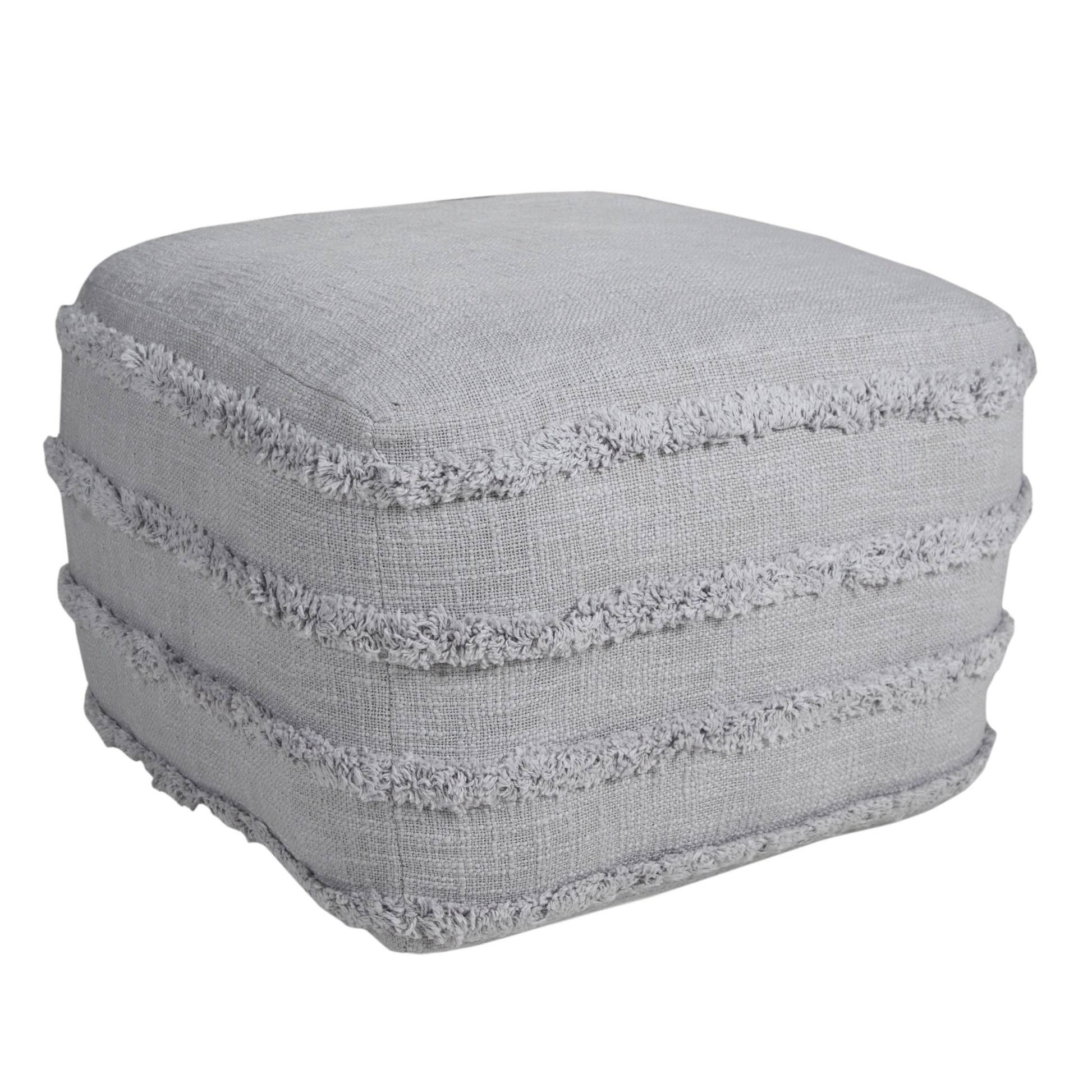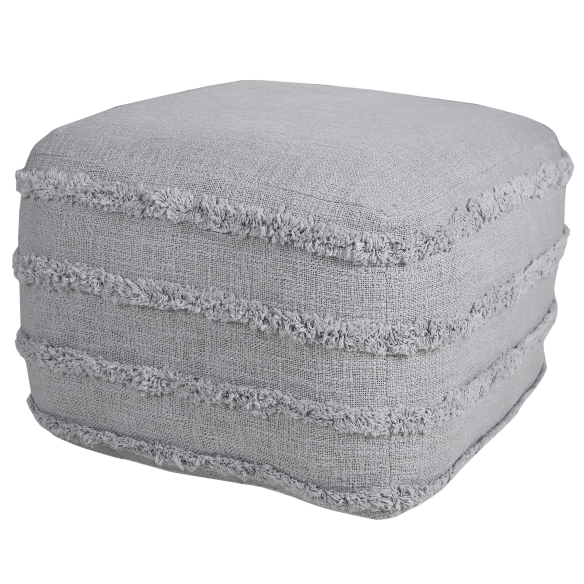 Add a good-looking decorative accent to your space that is also practical for seating. Add chic style to your space with this fun pouf that not only looks cool but can be a great footrest or extra seat when needed. Expertly upholstered with padding and soft 100% cotton in a striped pattern, this ottoman is as comfortable as it is good looking. Ottomans are multi-functional additions to your space that add fashion and practical value. 14-inch h x 18-inch w x 18-inch d.