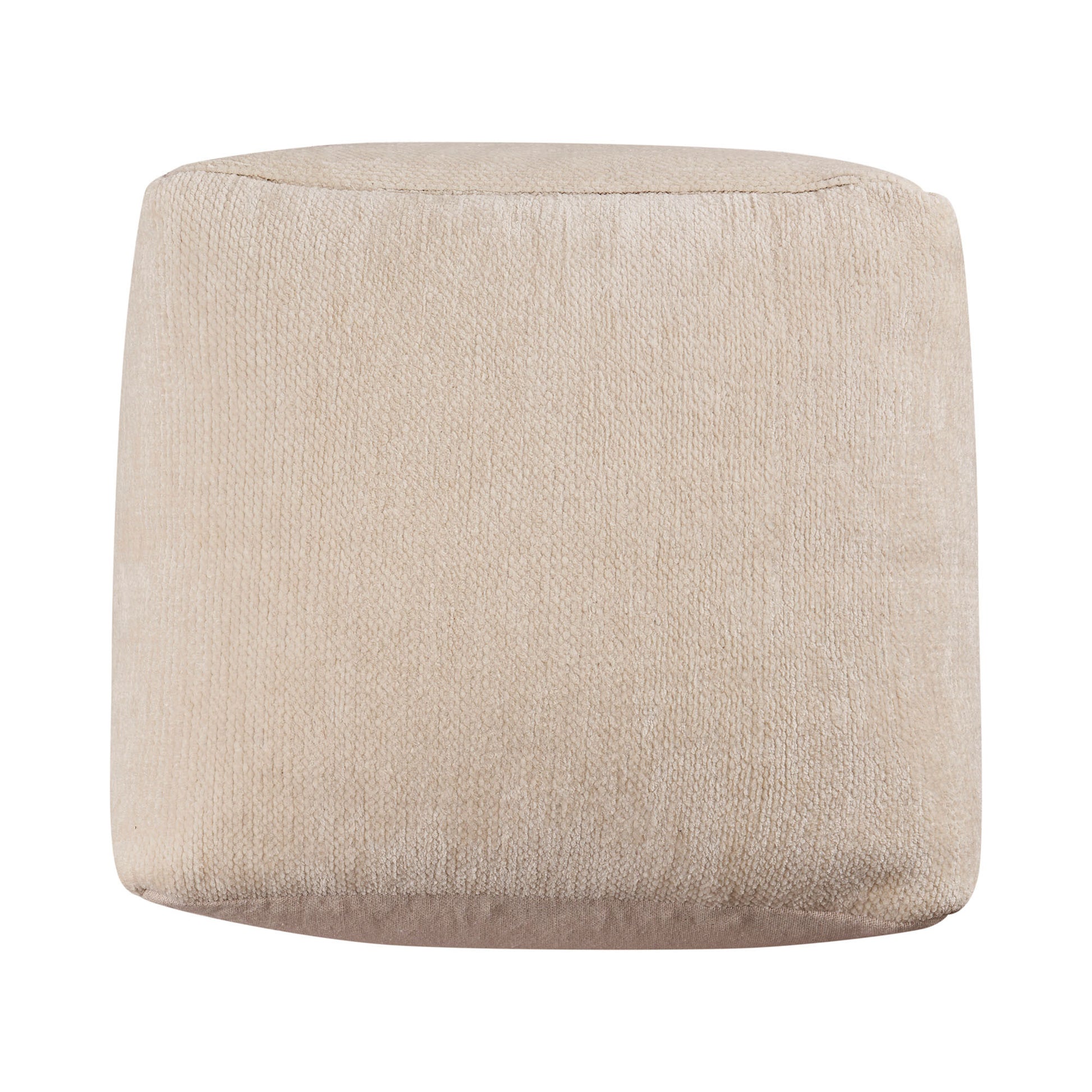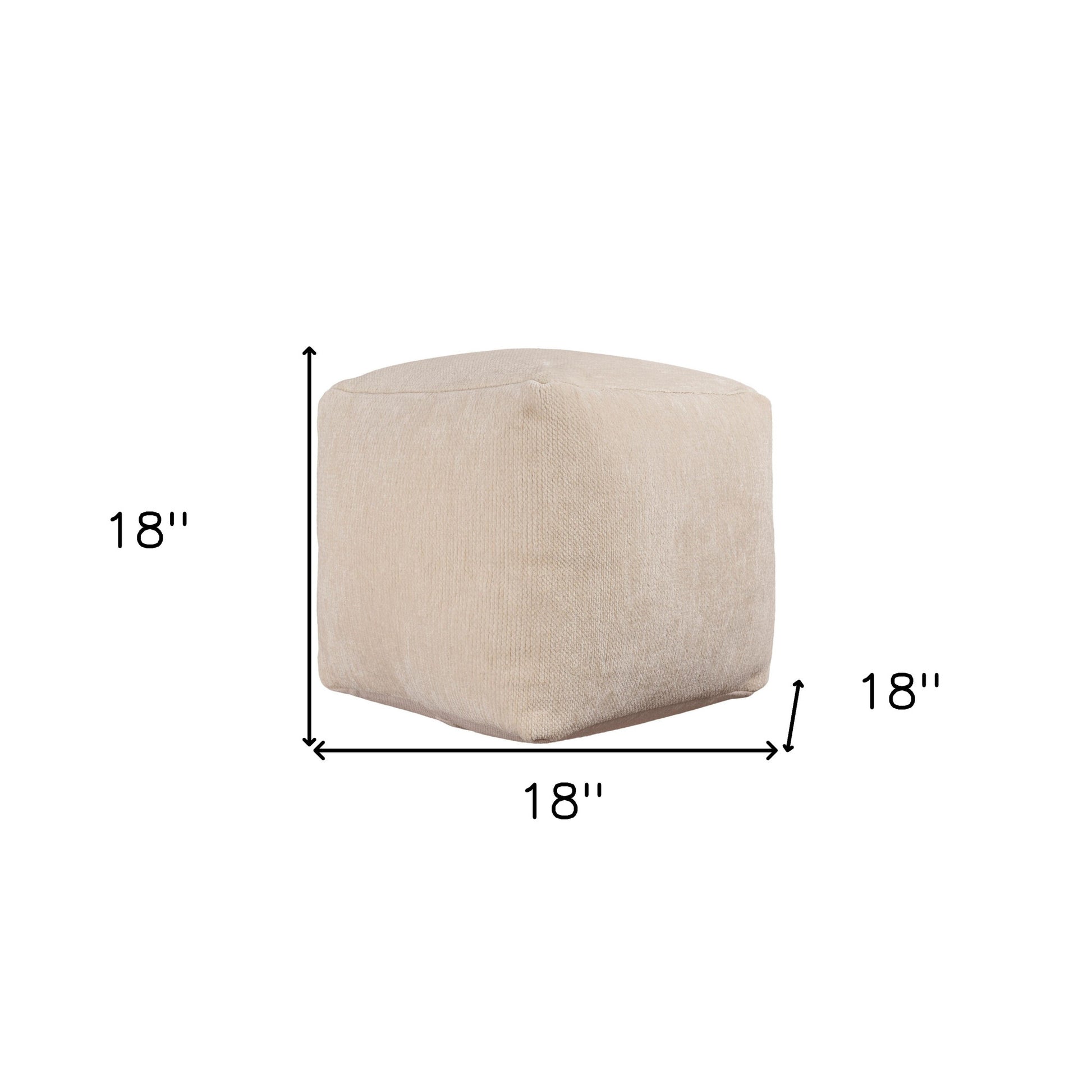 Get ready to relax with this 18-inch ivory chenille cube pouf ottoman. Add chic style to your space with this fun pouf that not only looks cool but can be a great footrest or extra seat when needed. Expertly upholstered with padding in a soft solid color chenille, this ottoman is as comfortable as it is good looking. Ottomans are multi-functional additions to your space that add fashion and practical value. 18-inch h x 18-inch w x 18-inch d.
