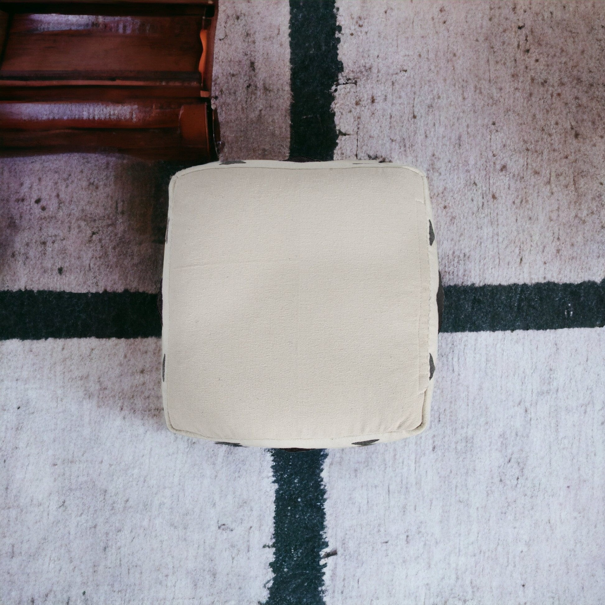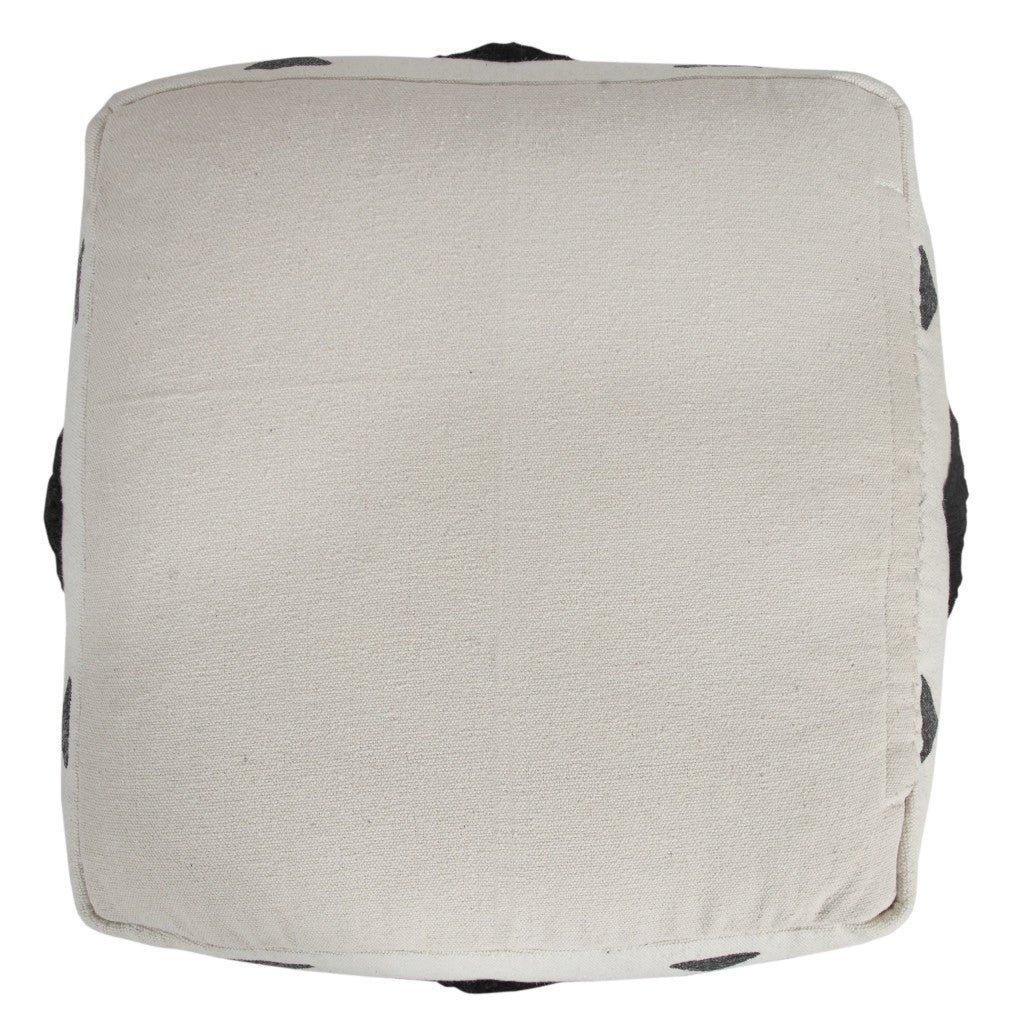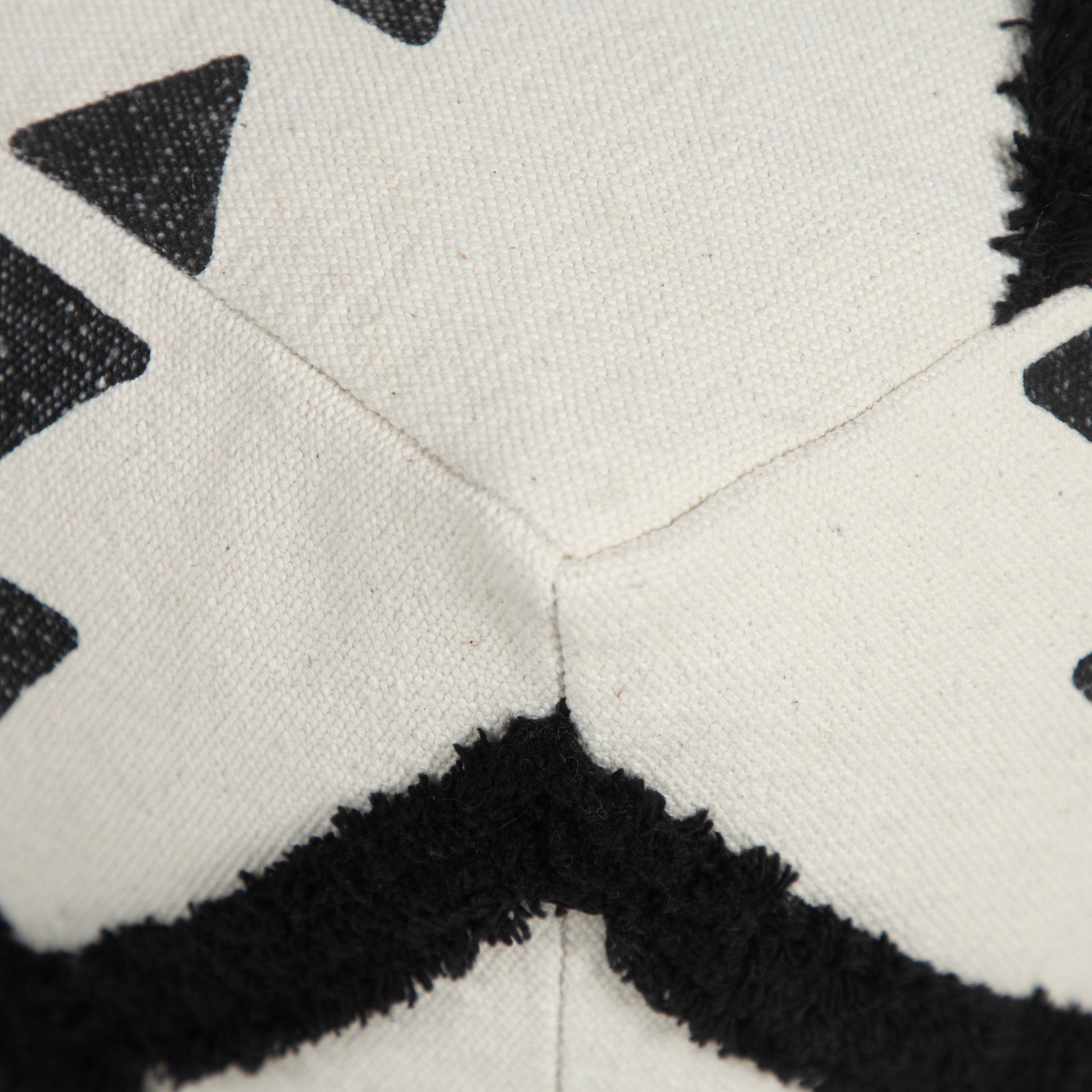 Practicality and fashion mix together with this handy 18-inch white cotton geometric pouf ottoman. Add chic style to your space with this fun pouf that not only looks cool but can be a great footrest or extra seat when needed. Expertly upholstered with padding and soft 100% cotton in a geometric pattern, this ottoman is as comfortable as it is good looking. Easy to blend into most any room, a ottoman is a way to add a good-looking accent to your space that can also be practical and useful. 14-inch h x 18-inch w x 18-inch d.