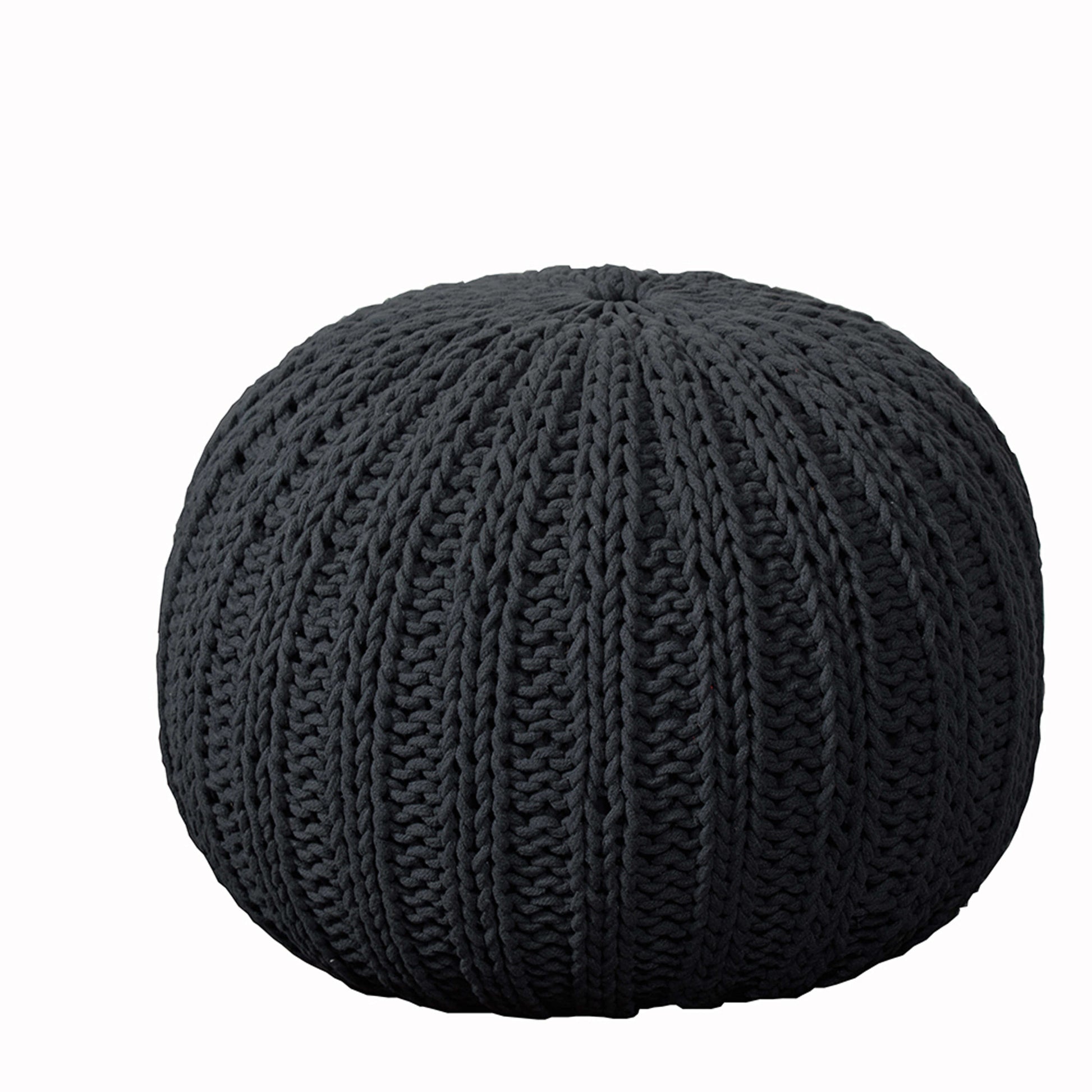Get ready to relax with this 20-inch black cotton round pouf ottoman. Add chic style to your space with this fun pouf that not only looks cool but can be a great footrest or extra seat when needed. Expertly upholstered with padding in a soft solid color 100% cotton, this ottoman is as comfortable as it is good looking. Ottomans are multi-functional additions to your space that add fashion and practical value. 16-inch h x 20-inch w x 20-inch d.