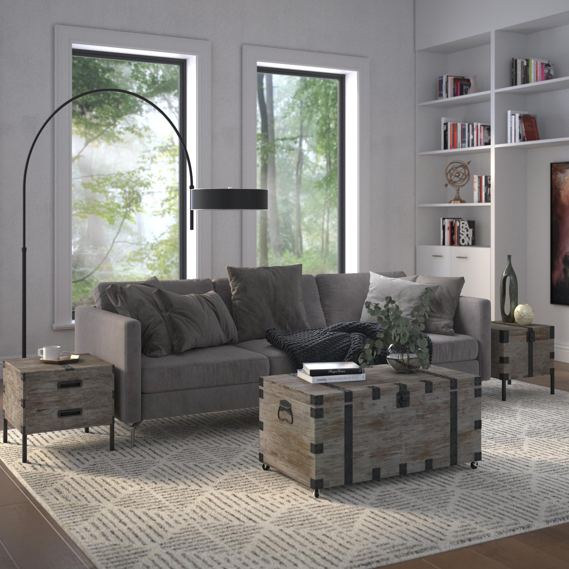 Make a statement with the 22-inch brown reclaimed wood distressed trunk coffee table and infuse a dash of character and personality into your space. Made of reclaimed wood, the brown coloration throughout gives this piece an updated and refreshing look. The purposefully distressed finish gives this table an authentically rustic feel. This trunk table offers added storage options. This classic rectangular table will be a great accent in any room wheels give the table added versatility and mobility if needed. If you're looking for something that can fit into a living area, bedroom, or office, this coffee table is for you. 20-inch h x 22-inch w x 41-inch d.