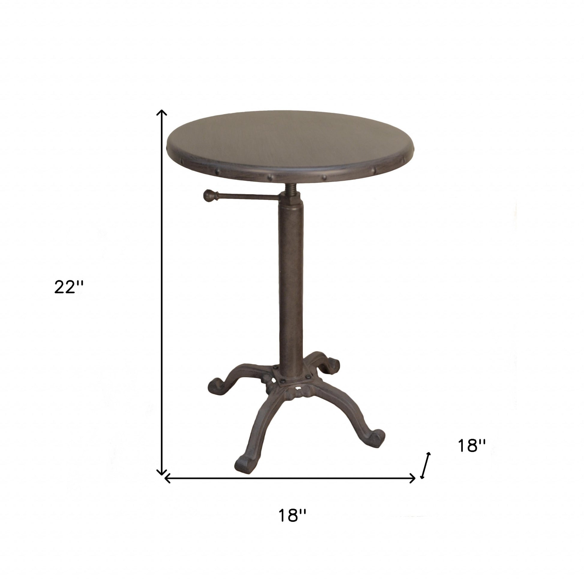Distinctive in style the 22" industrial and industrial iron round end table radiates a versatile charm. Offering a nice color combination, the top of this iron table is industrial, while the base compliments it nicely in industrial. A great accent on either side of the sofa or bed, this adorable end or side table is just what you need. You can also use it as an entryway table to hold your keys. 22" H x 18" W x 18" D