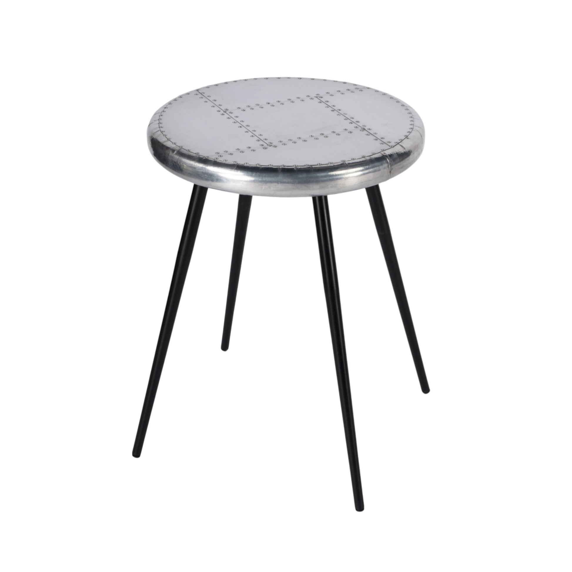 Distinctive in style the 23" silver manufactured wood round end table radiates a versatile charm. A solid silver iron frame is finished off with a matching aluminum sheeting over manufactured wood seat, giving this table a chic monotone looks with a unique patchwork design. The purposefully distressed finish gives this table an authentically rustic feel. An ideal location for placing your snacks and drinks, and a place to keep your lamp, frames, or other accessories. You can match it with other pieces to get the ideal look for your place. 23.25" H x 18" W x 18" D