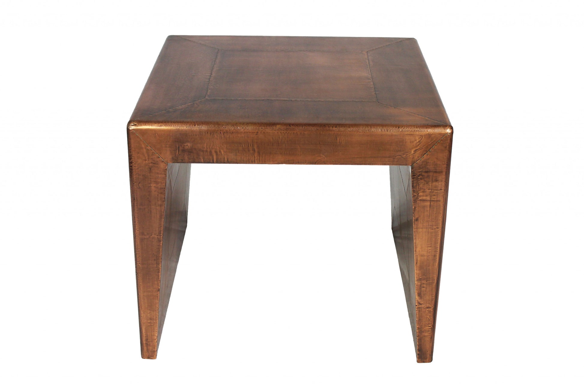 Show off your exquisite taste with this 24-inch copper wood and metal square end table. Made of wood with copper colored metal cladding, this piece has an updated and refreshing look with a modern industrial or aviator style. Side tables are a great way to flank your sofa, use as an accent next to your favorite chair, or can even be used bedside. 24-inch h x 24-inch w x 24-inch d