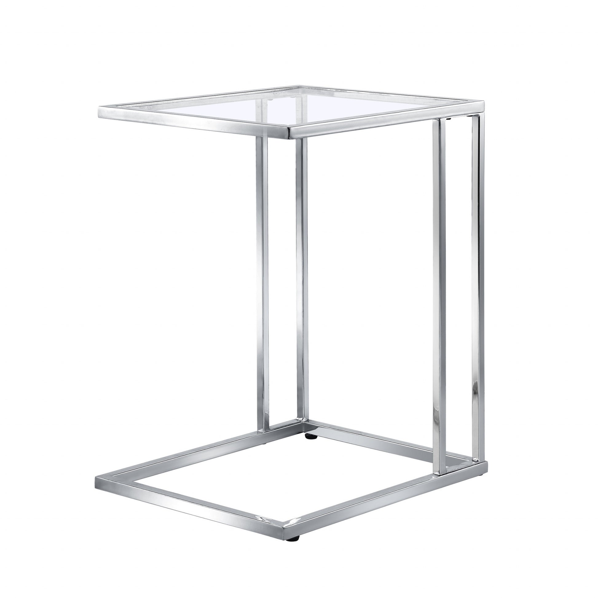 Show off your exquisite taste with this 25" chrome and clear glass square end table. A chrome iron frame is finished off with a clear glass top that is the epitome of quality construction and design. Side tables are a great way to flank your sofa, use as an accent next to your favorite chair, or can even be used bedside. This versatile table is a great accent for most any room. 24.75" H x 15.75" W x 19" D