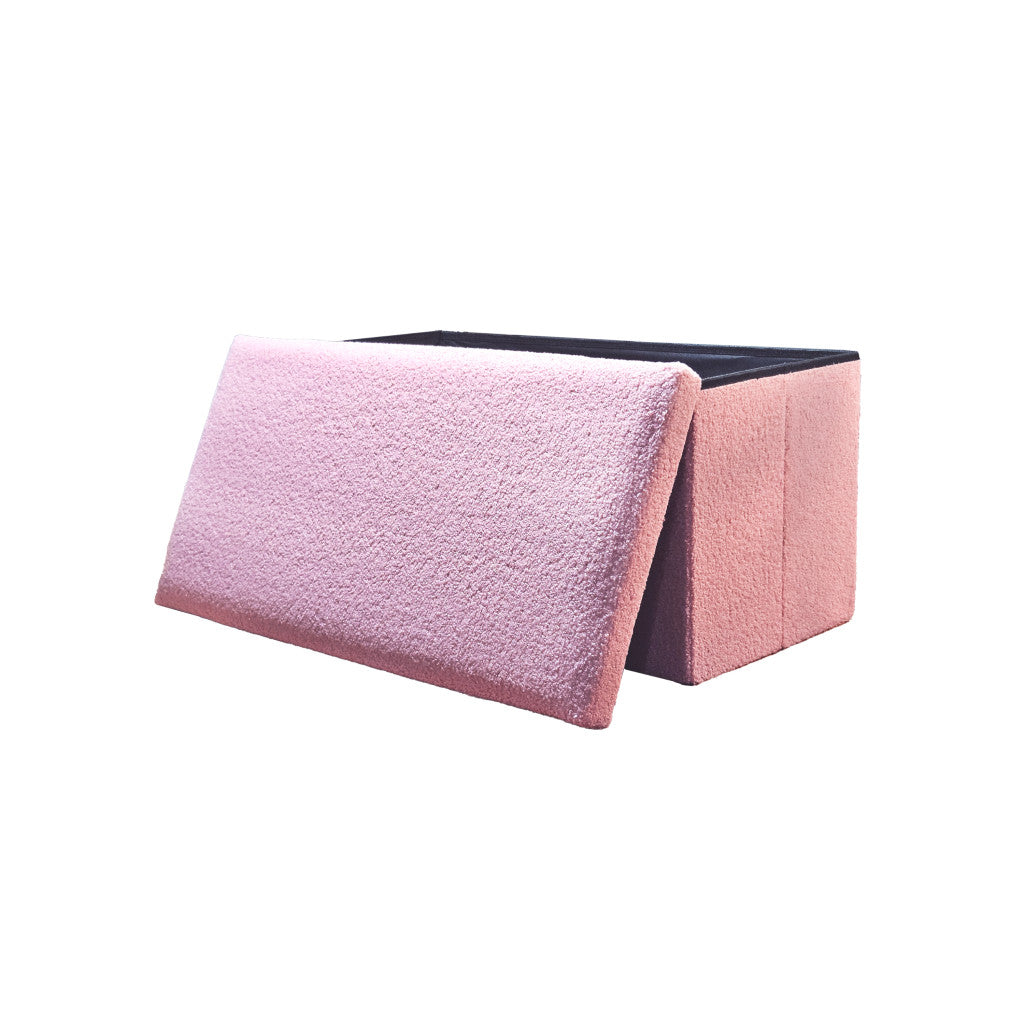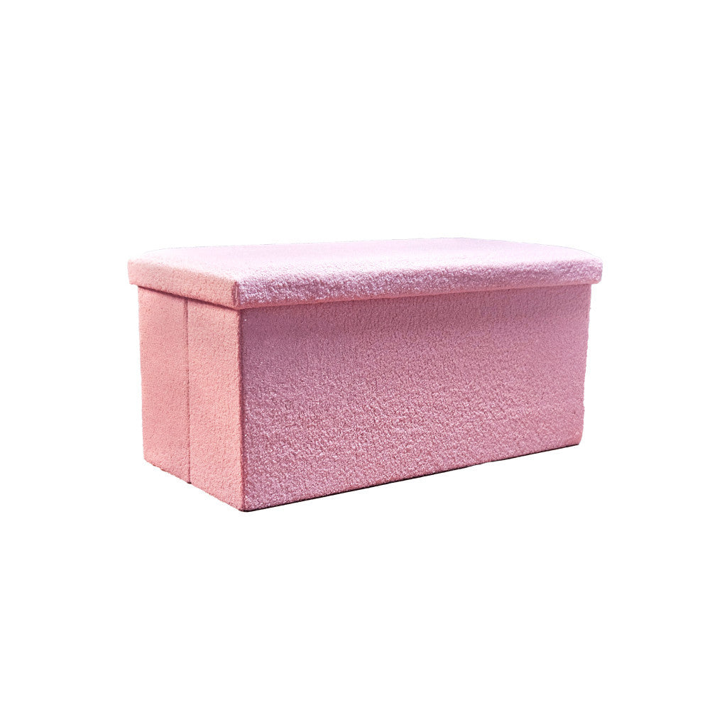 Practicality and fashion mix together with this handy 30-inch pink boucle storage ottoman. Designed to discretely add hidden storage to your room without sacrificing seating or footrest space. The upholstery top of this ottoman is a nice contrast to the upholstery material. Expertly upholstered with padding in a soft solid color boucle, this ottoman is as comfortable as it is good looking. Ottomans are multi-functional additions to your space that add fashion and practical value. 15-inch h x 30-inch w x 15-inch d.