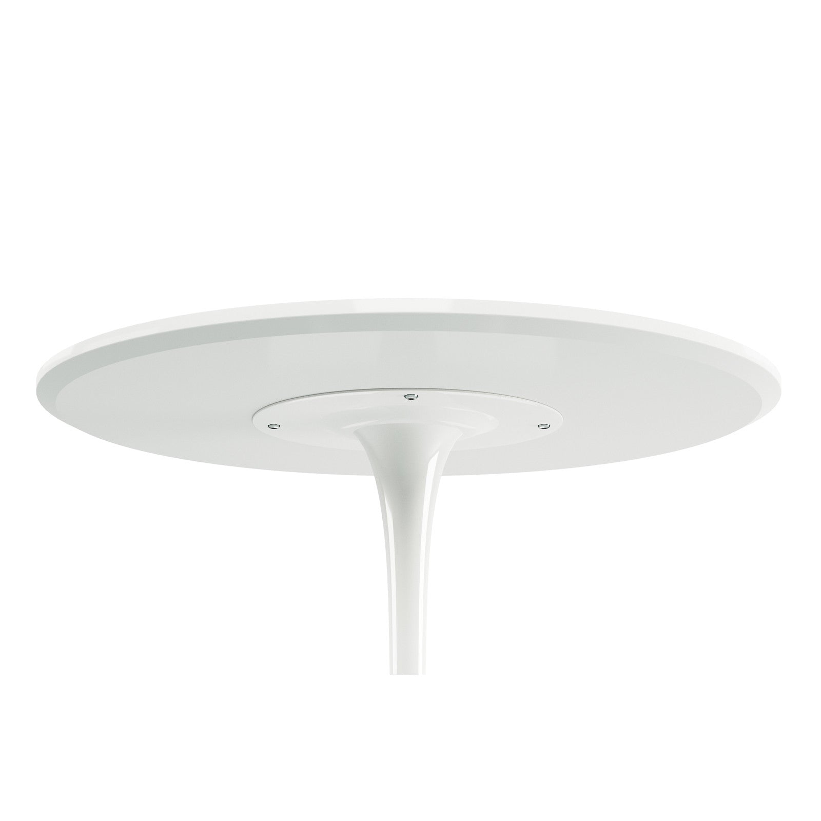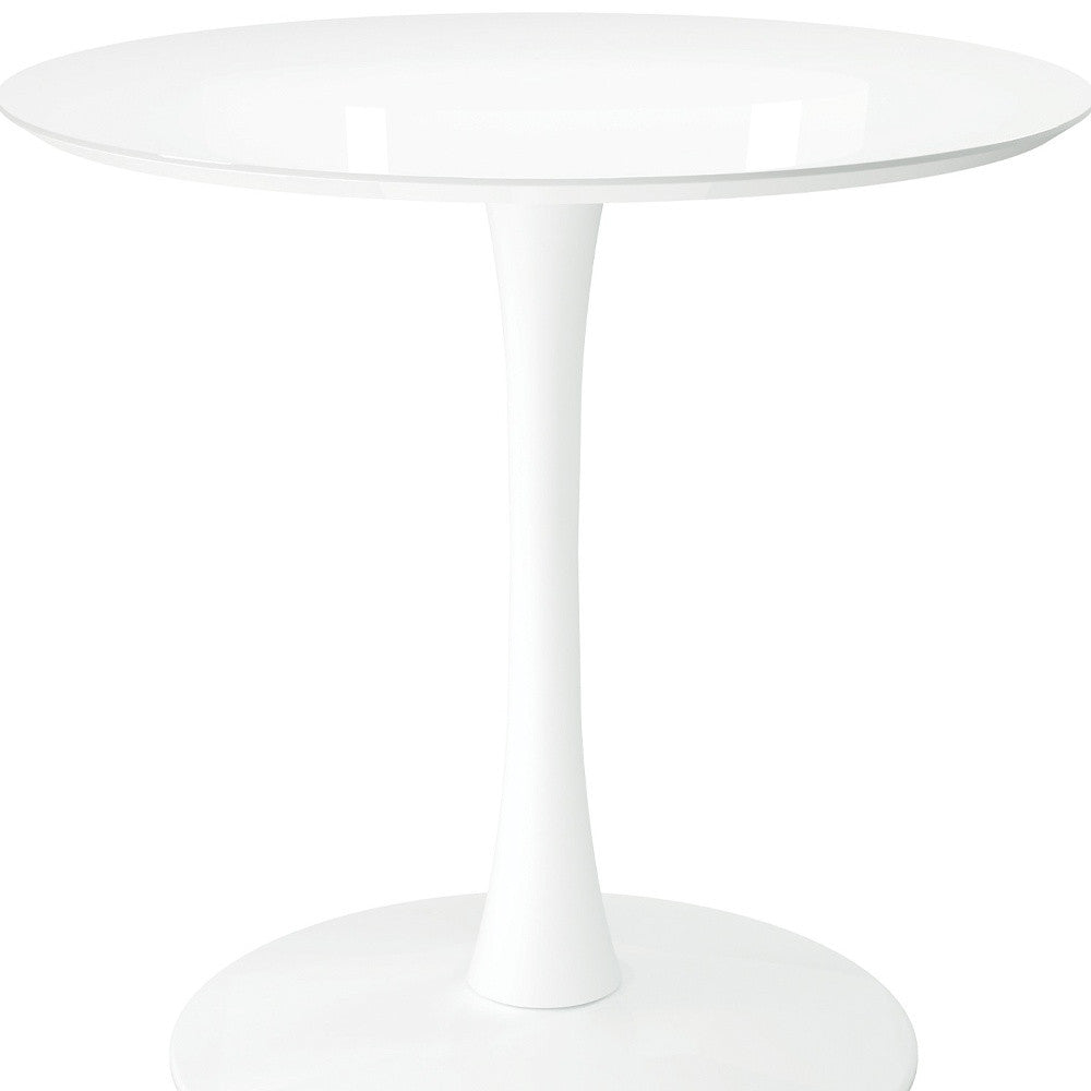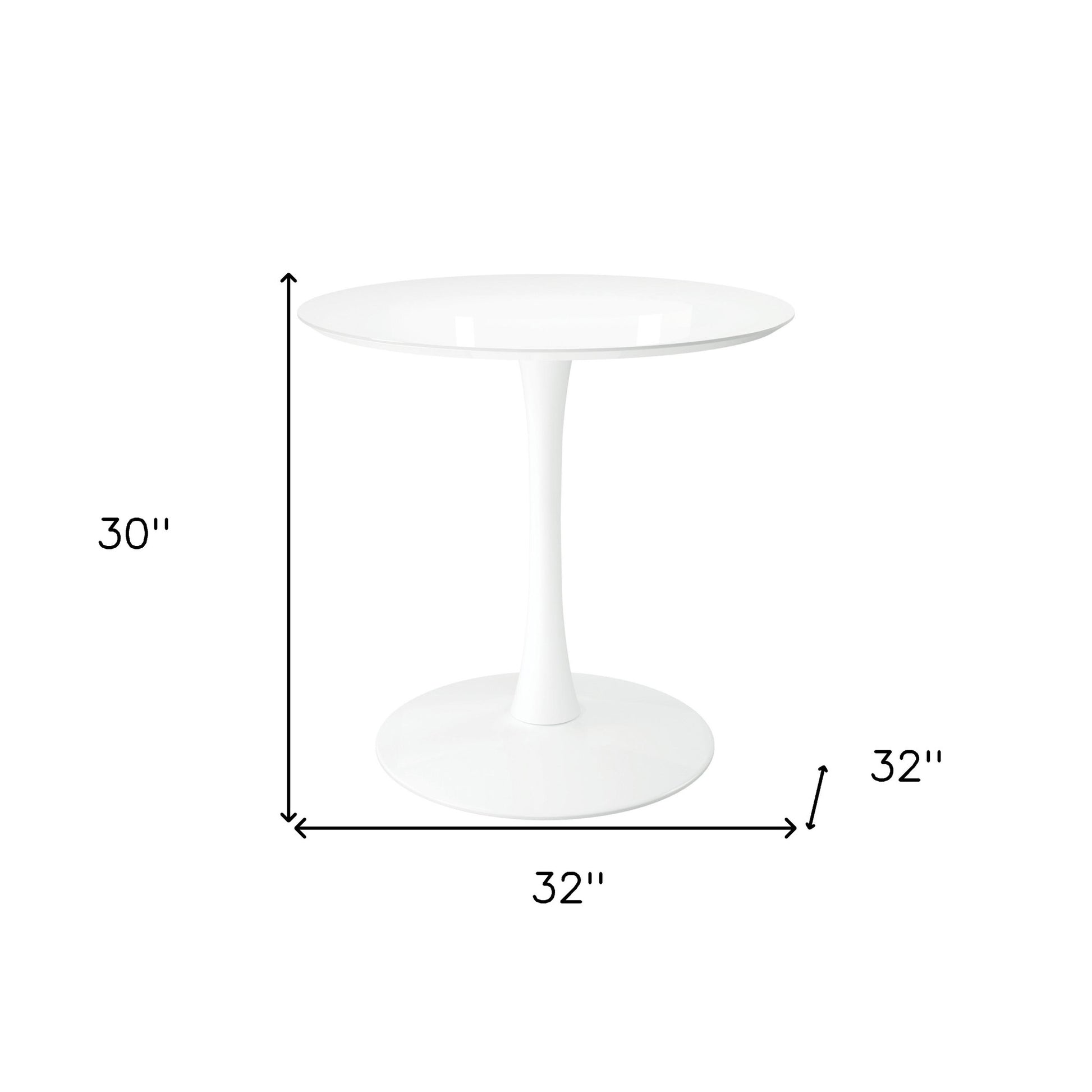 This good looking 32" white metal dining table is sure to inspire compliments. A white coloration runs throughout this good-looking metal and manufactured wood table. A shiny and sheer gloss finish gives this table a bit of a modern and contemporary vibe. A beautiful pedestal base adds some dimension and elegance to your dining. Seat up to 2 family and friends around your new dining table. This table is the sturdy, reliable and stylish answer to your dining room needs. The dining table plays a central part in your home. This design is a great way for you to enjoy dining and entertaining in style. 30" H x 32" W x 32" D