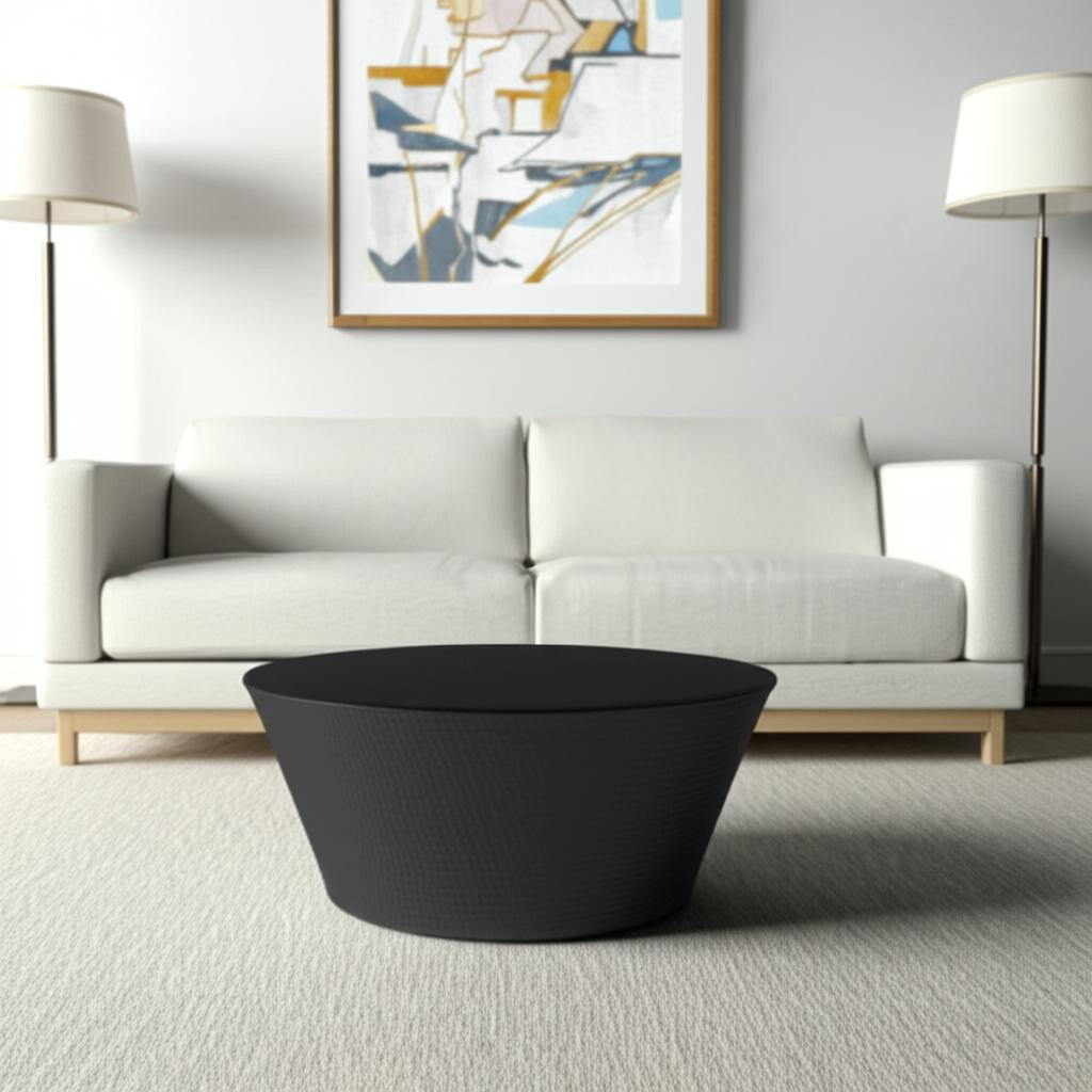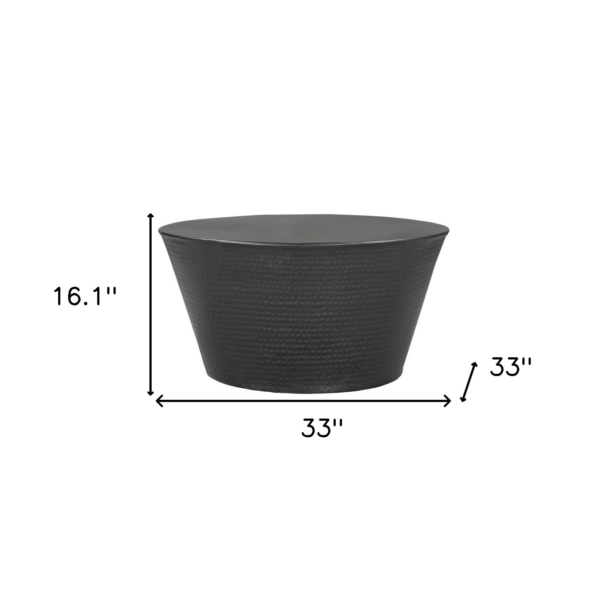 Stylish and super sturdy, the 33-inch black iron round solid coffee table is an amazingly good looking coffee table that will compliment your living room. This table features quality construction from iron and an updated monotone color scheme with black as the main color on both the top and the base. It has an attractive design that will definitely breathe some fresh air into your interior. 16.1-inch h x 33-inch w x 33-inch d.