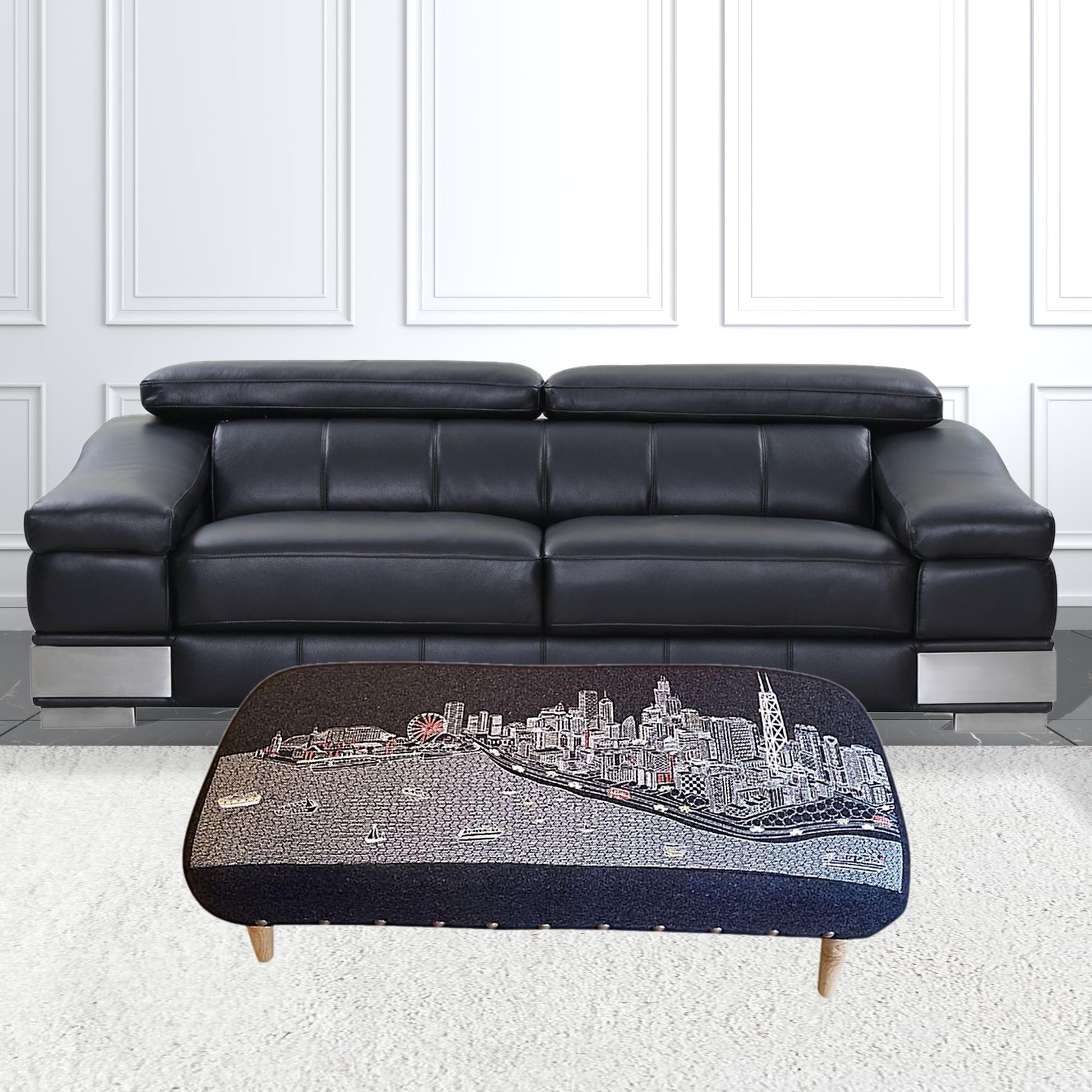 Get ready to relax with this 38-inch gray wool and brown ottoman. Fine detailing such as nail head trim gives this ottoman a rich and elegant look. Upholstered in luxurious wool, this piece offers both comfort and style. Its modern rectangular shape seamlessly fits into any decor, making it a versatile addition to your living space. The sturdy legs in a complementary brown finish provide not only support but also enhance the overall aesthetic. Perfect for serving as a footrest or extra seating, it embodies practicality and elegance. 17-inch h x 38-inch w x 16-inch d.