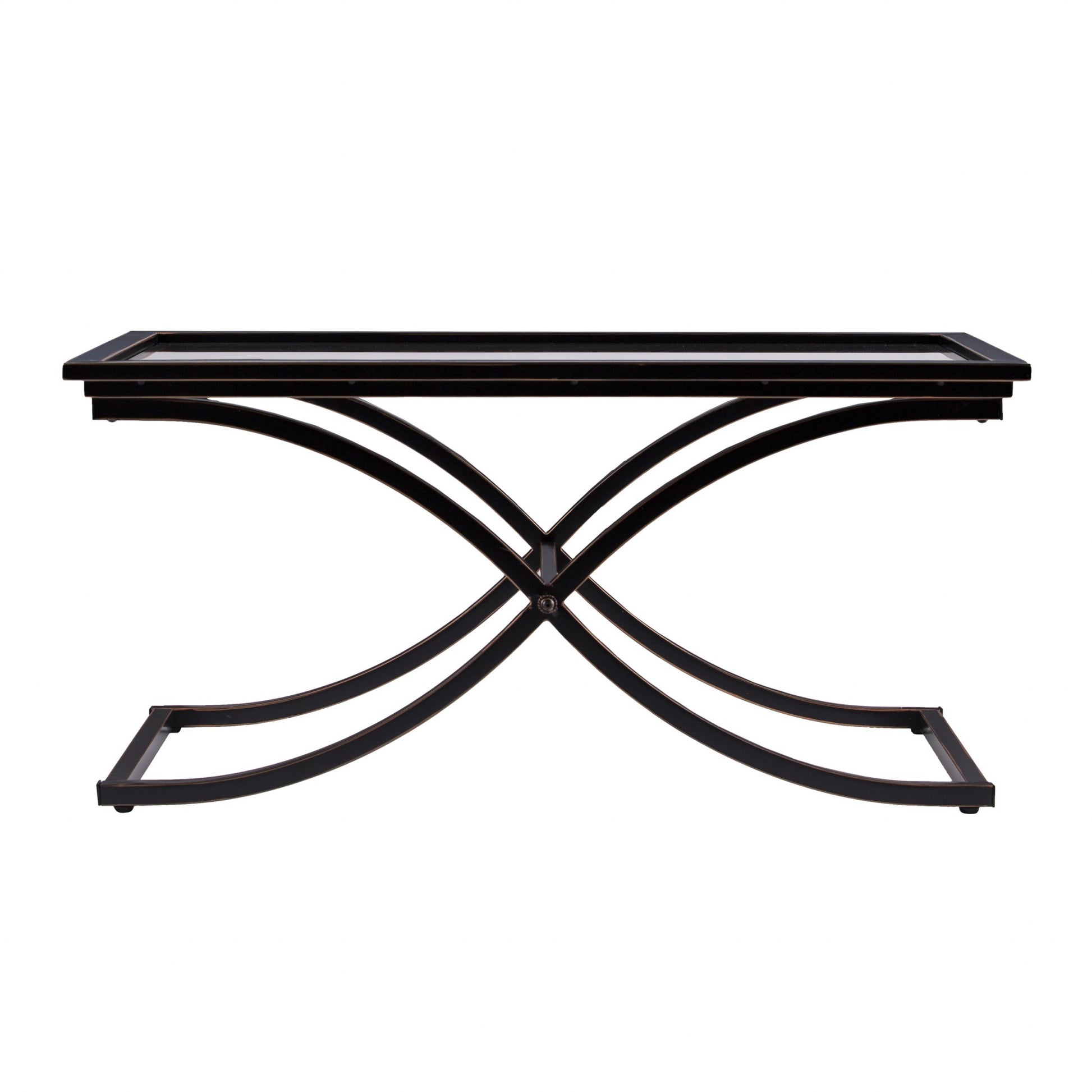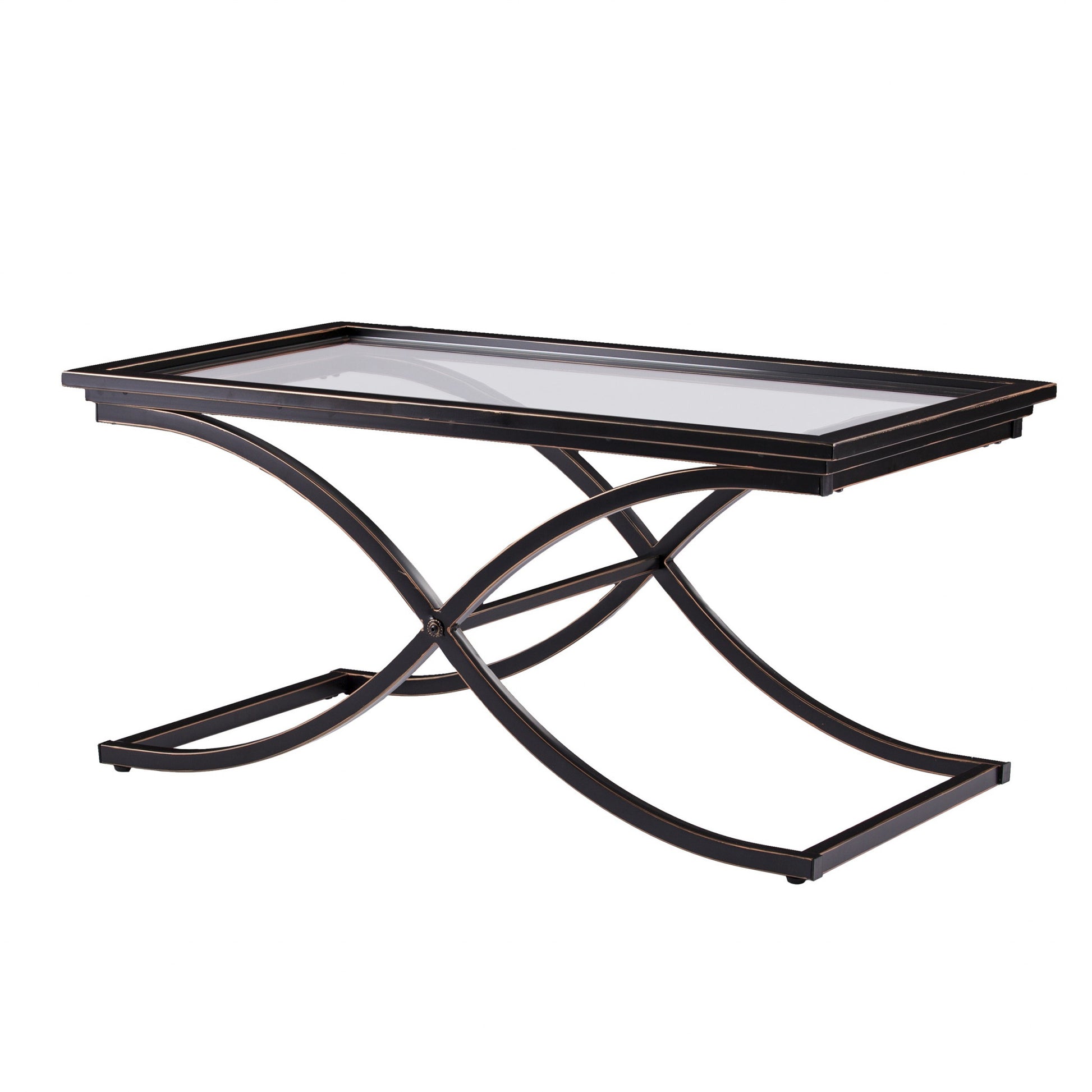 42" Black Glass And Metal Rectangular Coffee Table