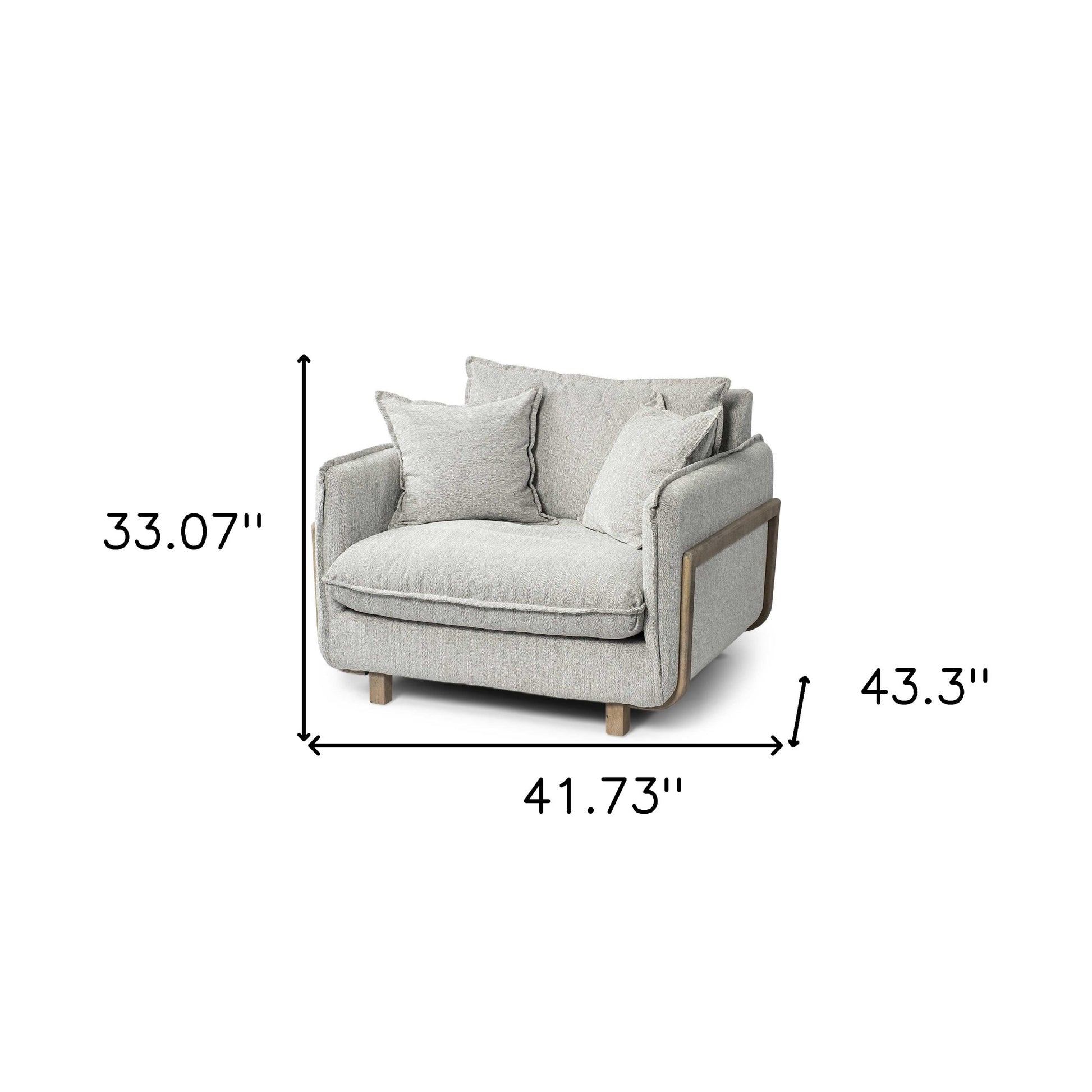 This 42-inch gray and brown fabric club chair will add a beautiful decorative accent to your decor. Built to last this club chair is finished in solid gray fabric to give your room a great update. The sturdy inner frame is built with high quality solid wood, includes armrests, and features a cushion back that is accented with soft and comfortable cushioning. 33.07-inch h x 41.73-inch w x 43.3-inch d.