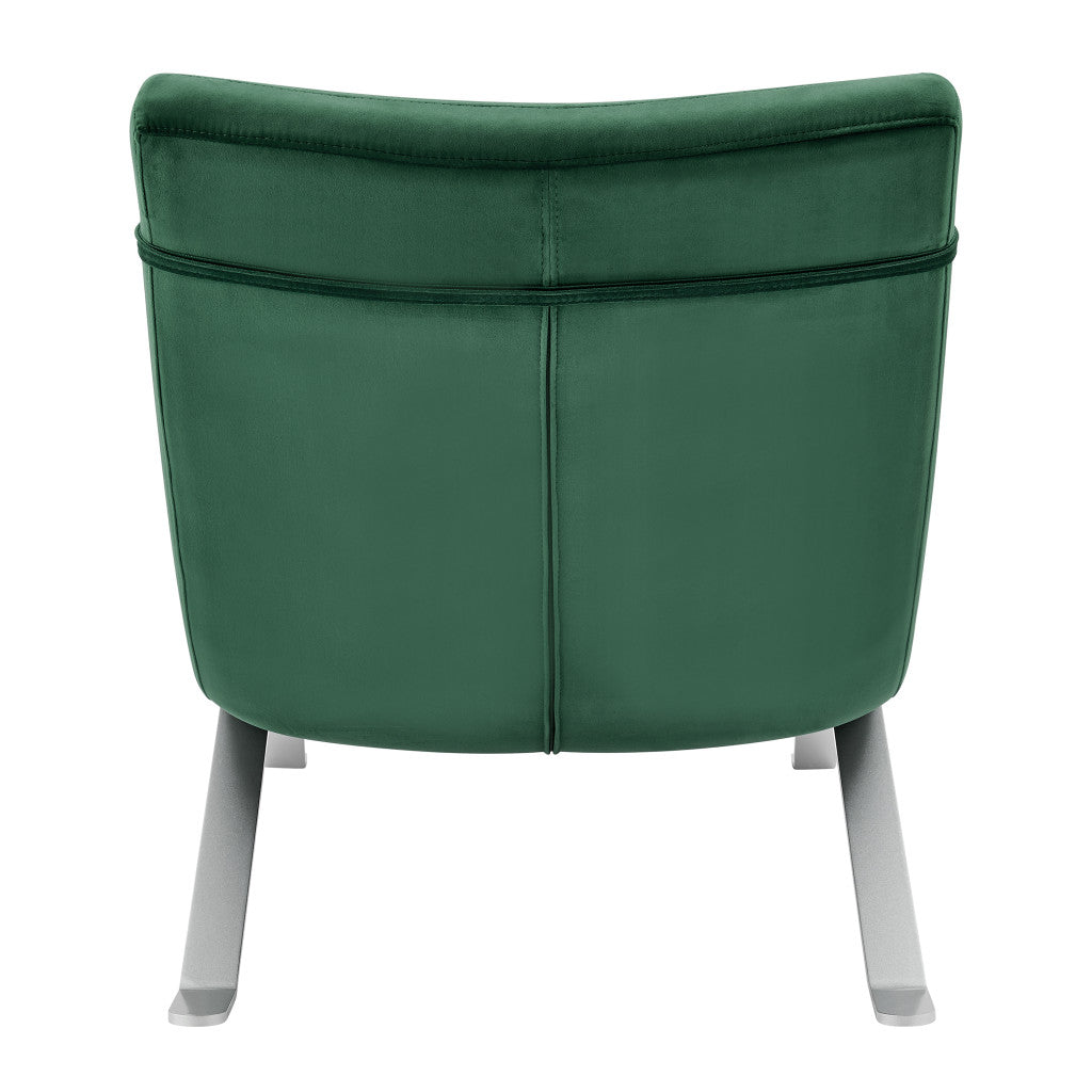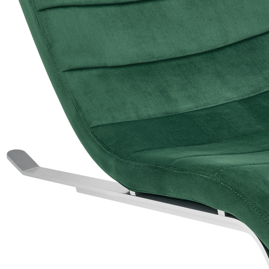 This 66-inch green and silver velvet lounge chair will add a beautiful decorative accent to your decor. This gorgeous solid color green lounge chair is masterfully upholstered in durable velvet. The sturdy inner frame is built with high quality metal, featuring a tufted back that is accented with soft and comfortable cushioning. 32.49-inch h x 65.95-inch w x 26.38-inch d.