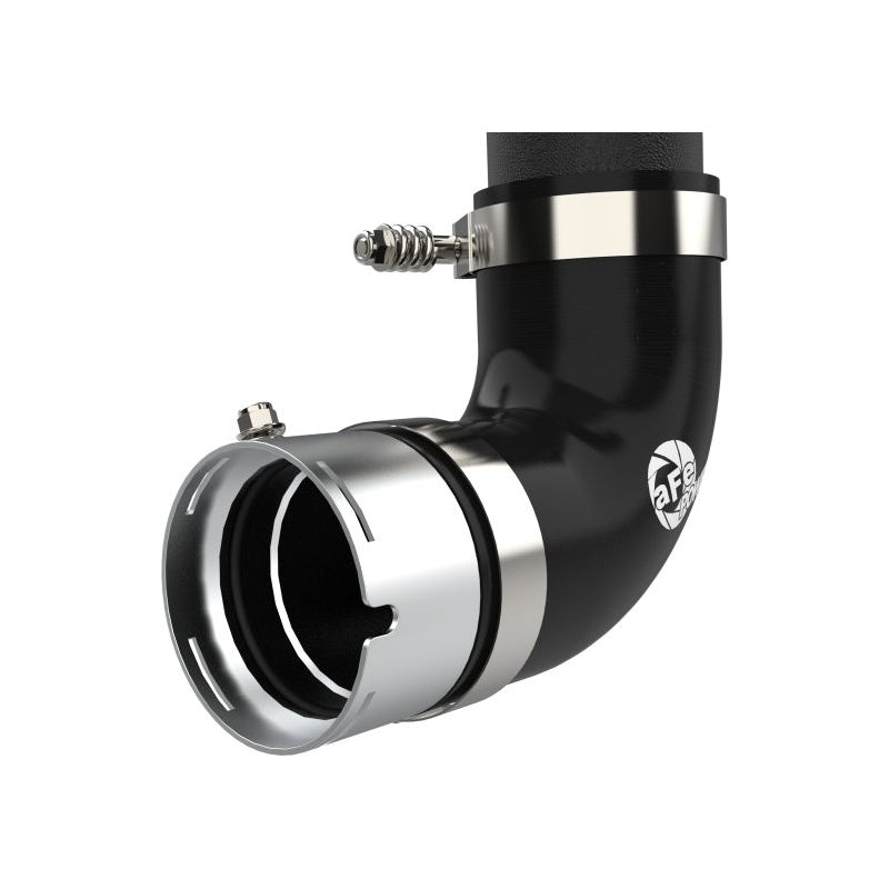 Smooth transitions in the mandrel-bent aluminum pipes decrease turbulence and minimize pressure loss, increasing horsepower and torque. This charge pipe kit provides a smooth transition between the turbo and the engine for lower operating temperatures and increased power. This kit includes high-quality, stainless-steel, spring-loaded T-bolt clamps and heavy-duty, 5-ply, polyester reinforced silicone couplings. This charge pipe kit also features factory style billet aluminum quick-connect adapters with O-rings to ensure a leak-free fit while maintaining superior strength and durability. Finished in wrinkle black powder coating with a unique laser-etched aFe power logo for a custom look.
