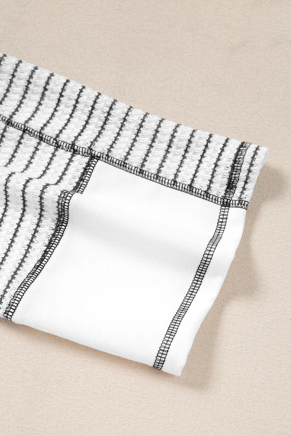 Meet Alaia Sleeve Raglan Patchwork Top—effortless, flattering, and easy to style for everyday life. This patchwork top has a chic look with striped raglan sleeves design. It includes delicate bracelet sleeves that end just above the wrist adding a feminine and elegant touch. The loose fit style is very friendly and cozy. Perfect for both casual and semi-formal wear. long sleeve tops for women for daily, work, etc.