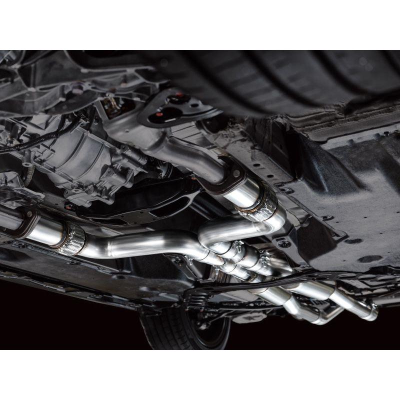 At the intersection of sophistication and aggression lies the Touring Edition Exhaust. Full 3" dual catback build for big boost, equipped with a symmetric X-pipe and robust resonators ready for big boost. The Touring Edition features AWE’s patented drone-canceling 180 Technology®. The sole mission of 180 Technology® resonators is to destroy drone-prone frequencies to keep you comfortable in the cabin at cruising speeds while producing full bodied tones outside of the cabin. Each 180 Technology® resonator features a straight-through design (i.e. if you were to look inside it would resemble the inside of a straight length of steel tubing) for optimum performance, and in conjunction with the dual 3” design, X-pipe, and robust resonators, this configuration perfect for drivers looking to get spicy upstream with lower downpipes and beyond. Comes complete with two 5" diamond black slash-cut tips, and all necessary hardware for installation. Each exhaust comes complete with bespoke adapter plates and gaskets to AWE’s dual 3” system to factory downpipes. If you’re mating to aftermarket components, this hardware is not needed.