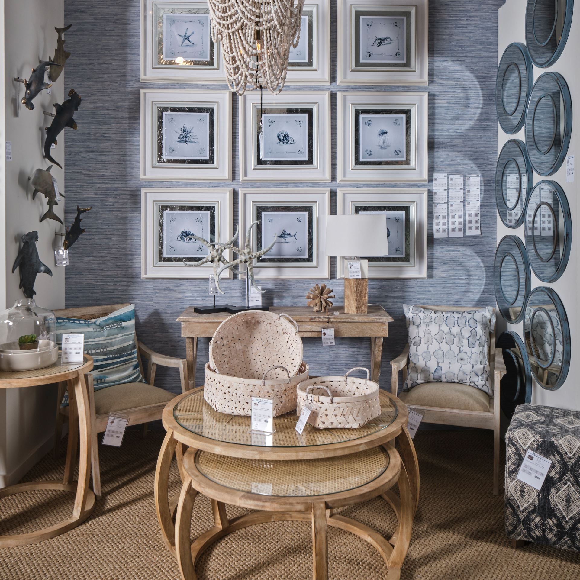 Show off your exquisite taste with this brown glass and solid wood round nested coffee tables. The nesting feature is a great space saver for when not in use. This table features an updated monotone color scheme with brown as the main color on both the glass top and the solid wood base. This round table features a fresh and stylish shape to give your room a visually pleasing accent. It has an attractive design that will definitely breathe some fresh air into your interior. 19.25-inch h x 41.5-inch w x 41.5-inch d.