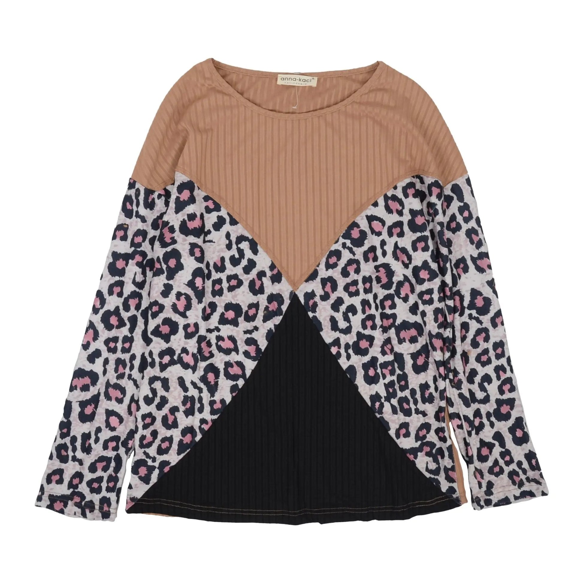 The Anna-Kaci sweater is detailed with amazing color block details mixing prints and color. Features a round neck line, long sleeves, drop shoulder, and relaxed fit. Pair it with your favorite denim jeans and accessories for an easy look.