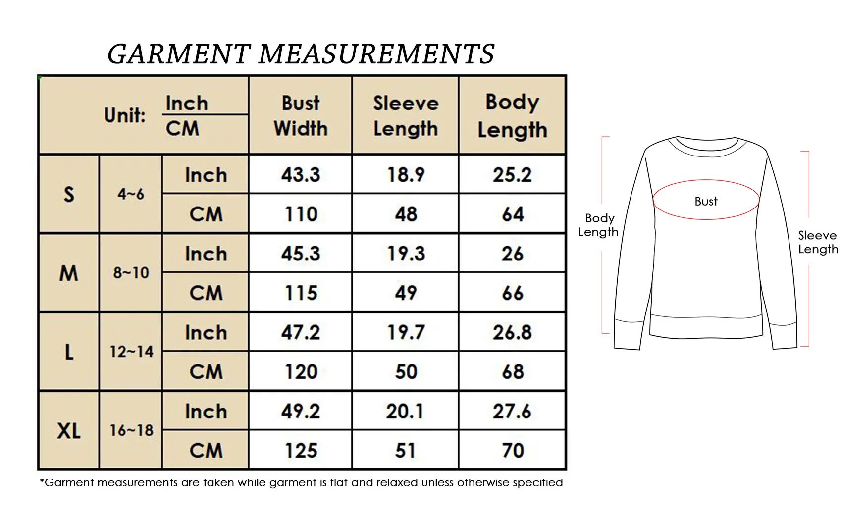 MEASUREMENTS: Sweater Length is 25.5in-27.5