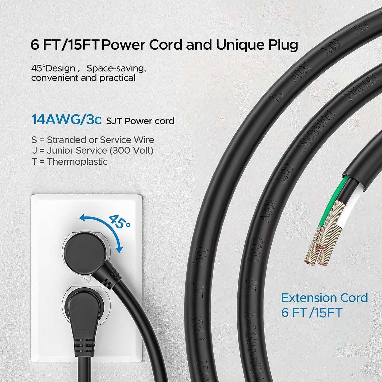 - [Slim Metal Heavy Duty] 1.5mm extra-thick aluminum alloy housing and reinforced engineering plastic covers make it extremely strong and durable. 6FT/15FT UL listed extension power cord for better corrosion and oil resistance, 15AMP/14AWG SJT grade wire supports 1875W power rate.