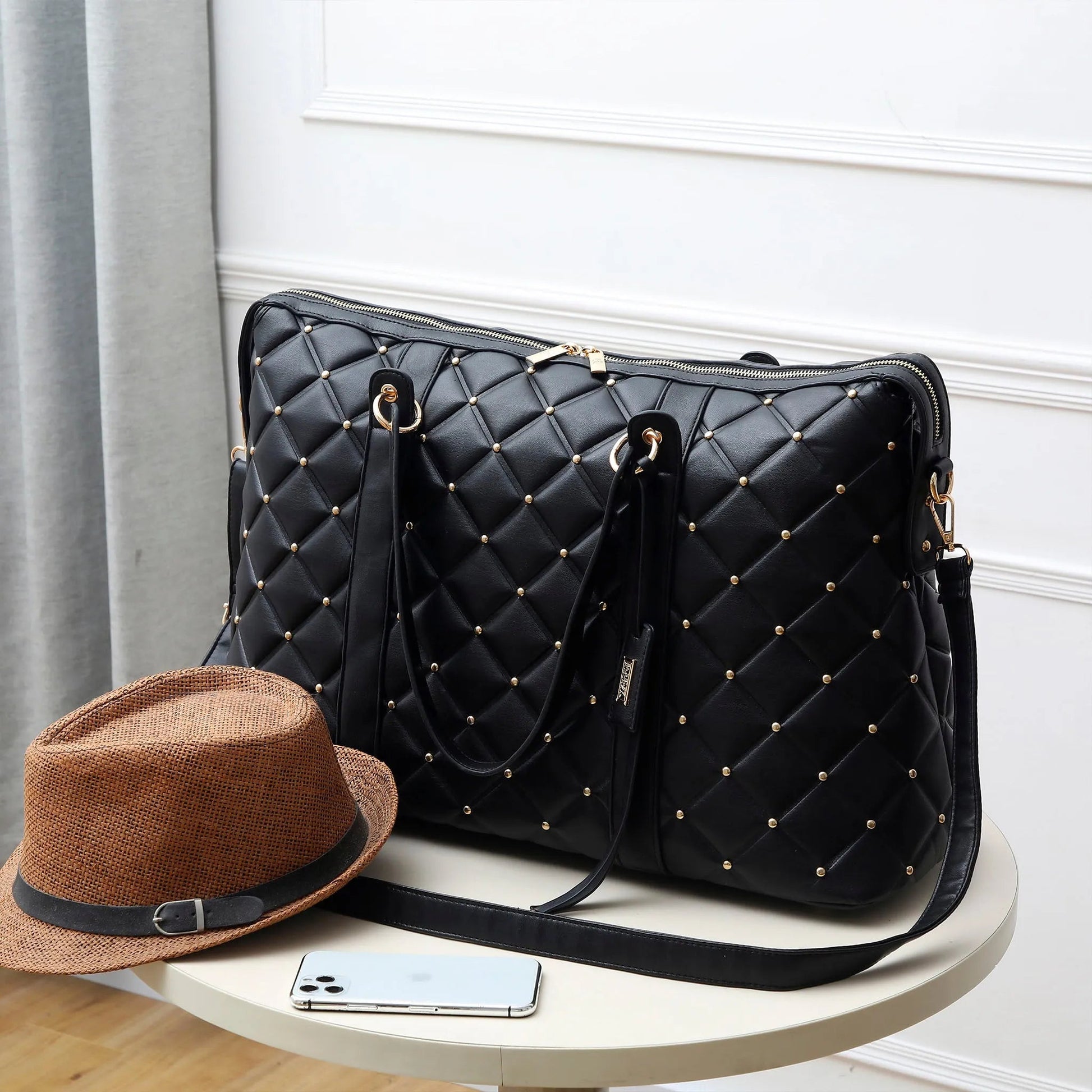 Diamond Quilted Vegan Leather Weekender Tote Bag