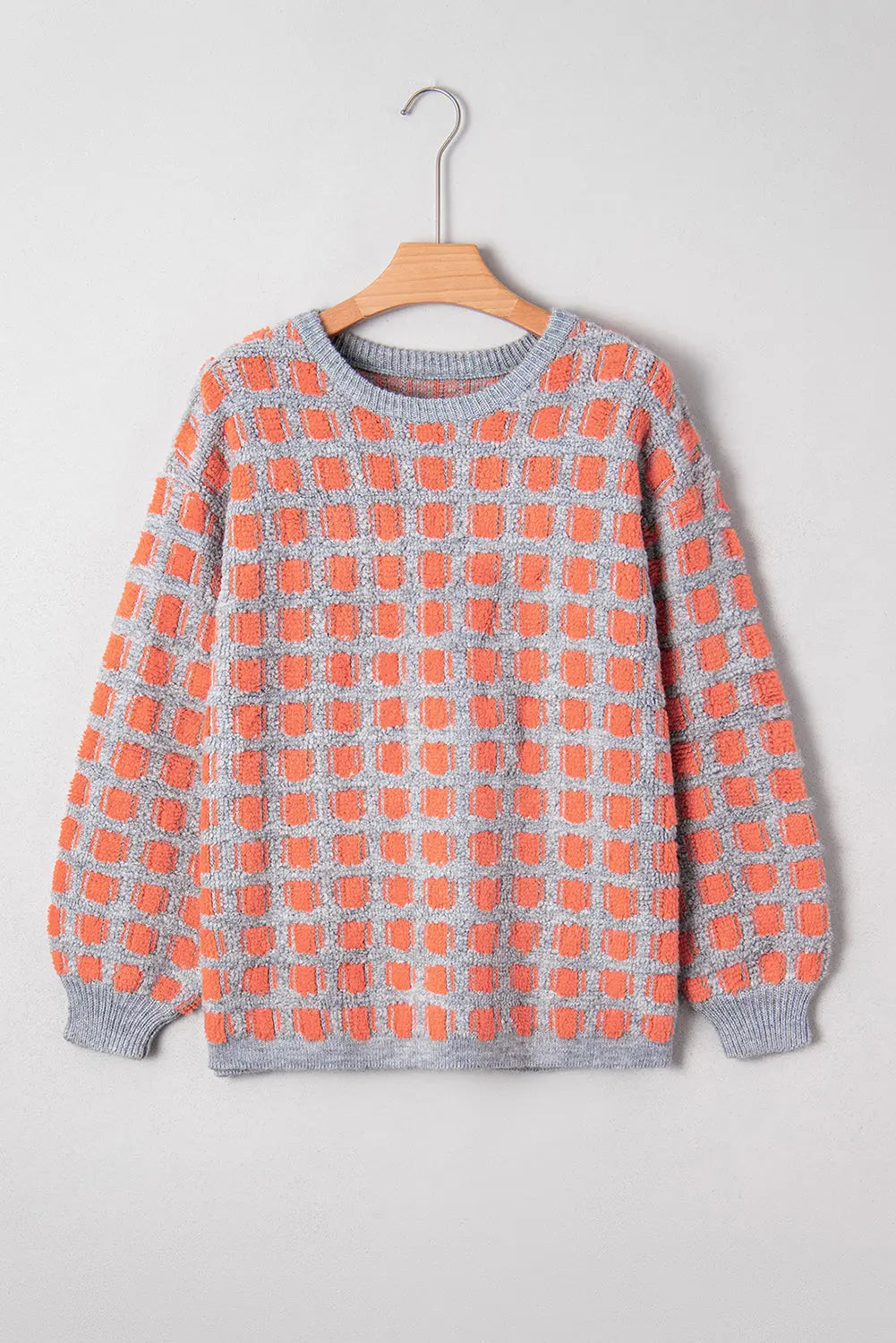 Meet Emma Oversized Side Slit Sweater—effortless, flattering, and easy to style for everyday life. Stay in comfort and style with our Checkered Oversized Side Slit Sweater. Expertly made with a classic checkered pattern. This oversized sweater offers both warmth and a trendy silhouette. Perfect for any occasion, this versatile piece will elevate your wardrobe. knit sweaters with chic patterns and unique styles.