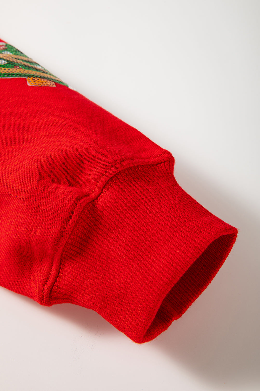 Meet Evelyn Graphic Drop Shoulder Sweatshirt—effortless, flattering, and easy to style for everyday life. The shining graphic design is so festive. Features a sequined tree pattern. 50% cotton blends, which feels very soft and cozy. It has a round neck, dropped sleeves, and a relaxed fit. Enrich your fashion with graphic sweatshirts .