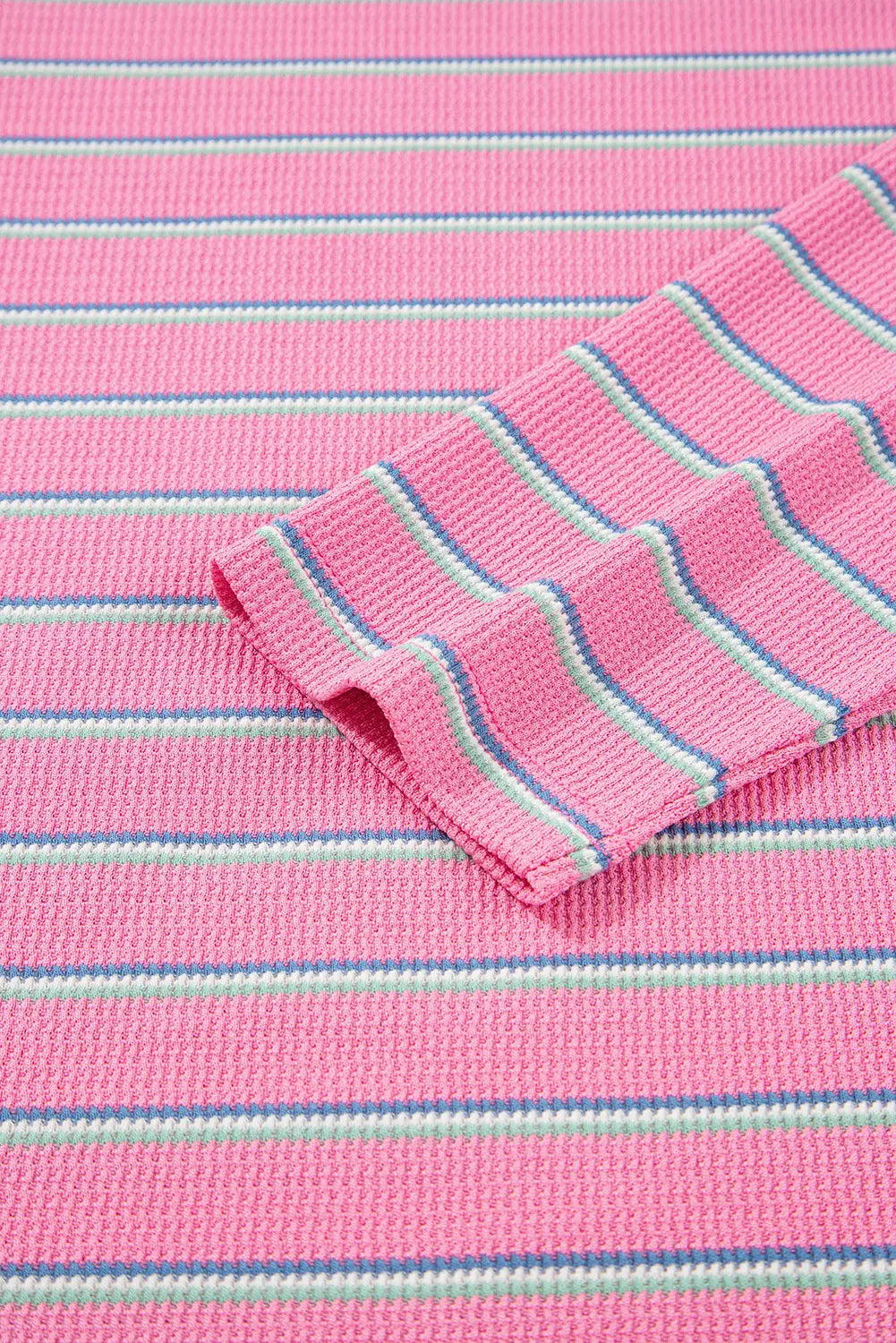 SKU:GianaStripeTexturedKnitLongSleeveTop-L