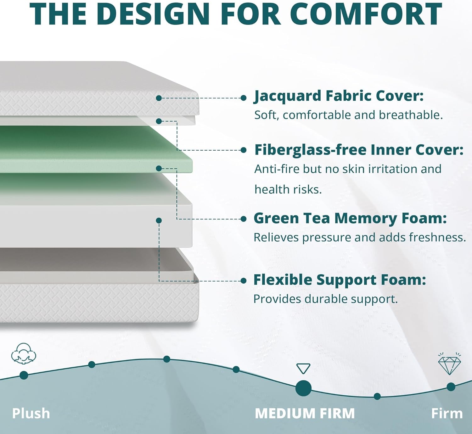 Green Tea Memory Foam Queen Mattress for Comfort by Brand delivers unmatched comfort and support for a refreshing and restful night's sleep.