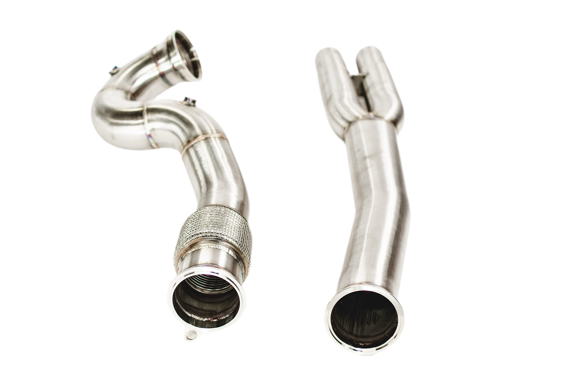 Upgrade to the IRL LLC downpipes to eliminate the back pressure caused by your stock catalytic converters. By upgrading to our downpipes, your turbos can now spool faster and achieve maximum power.