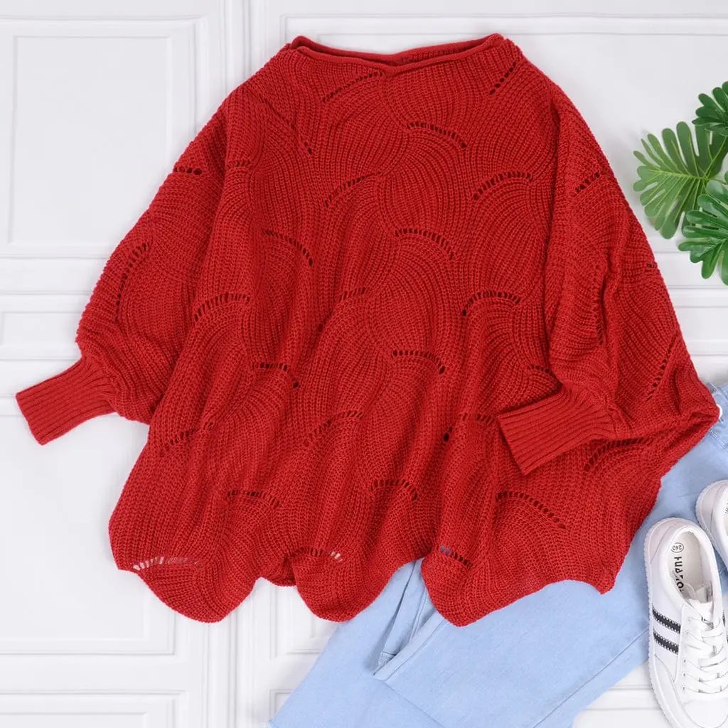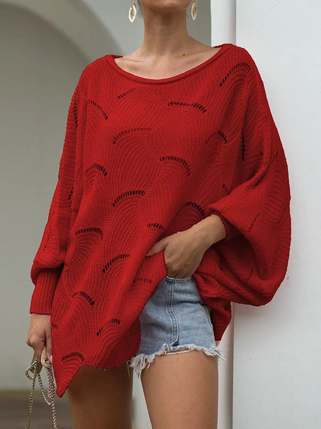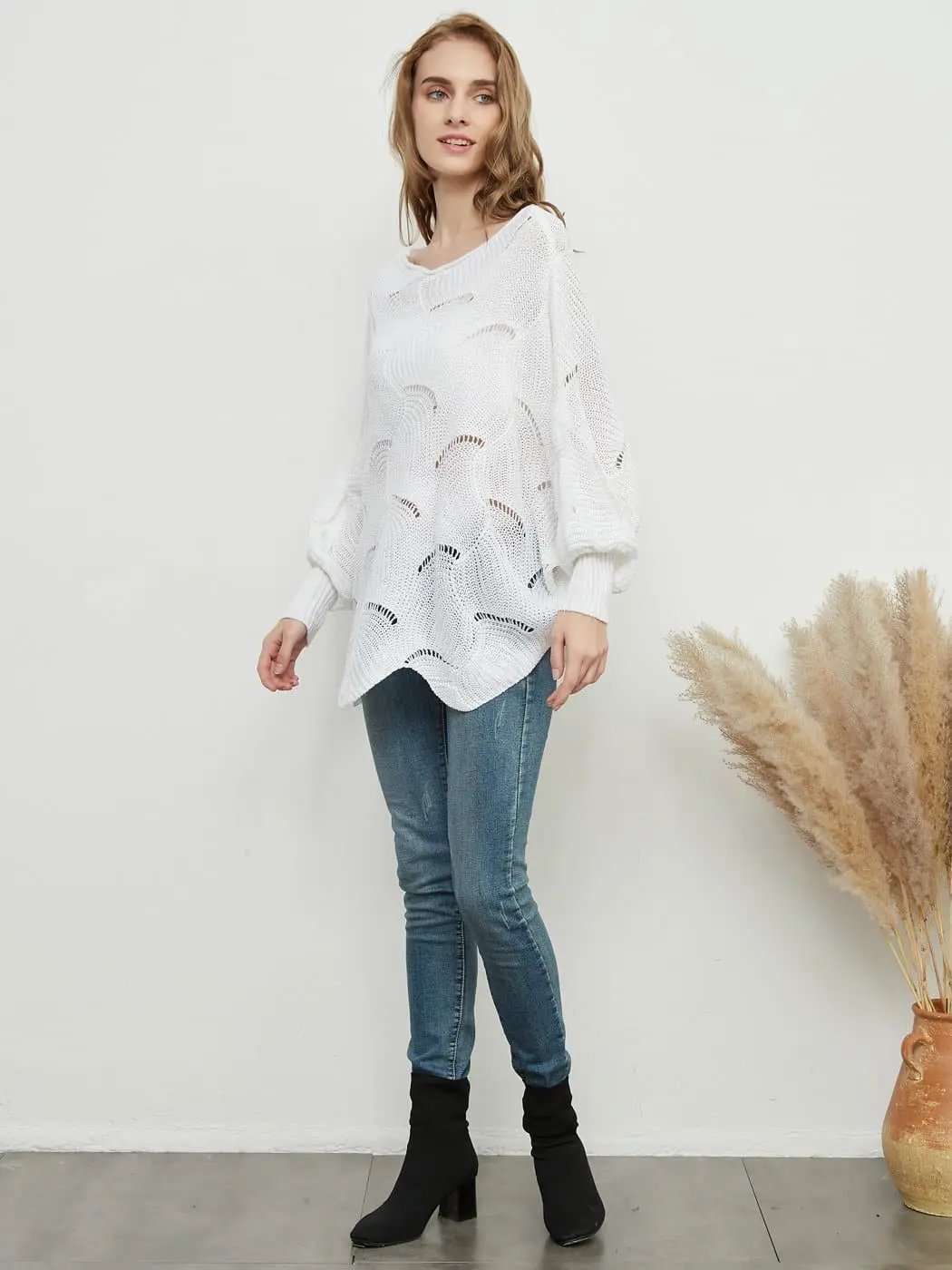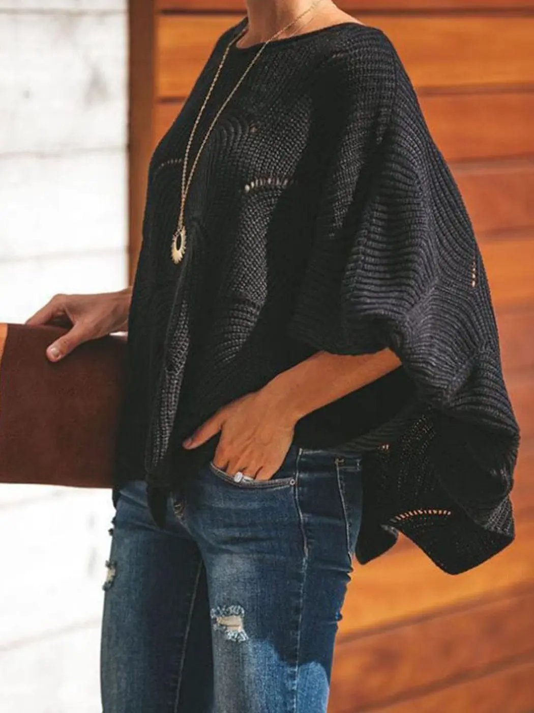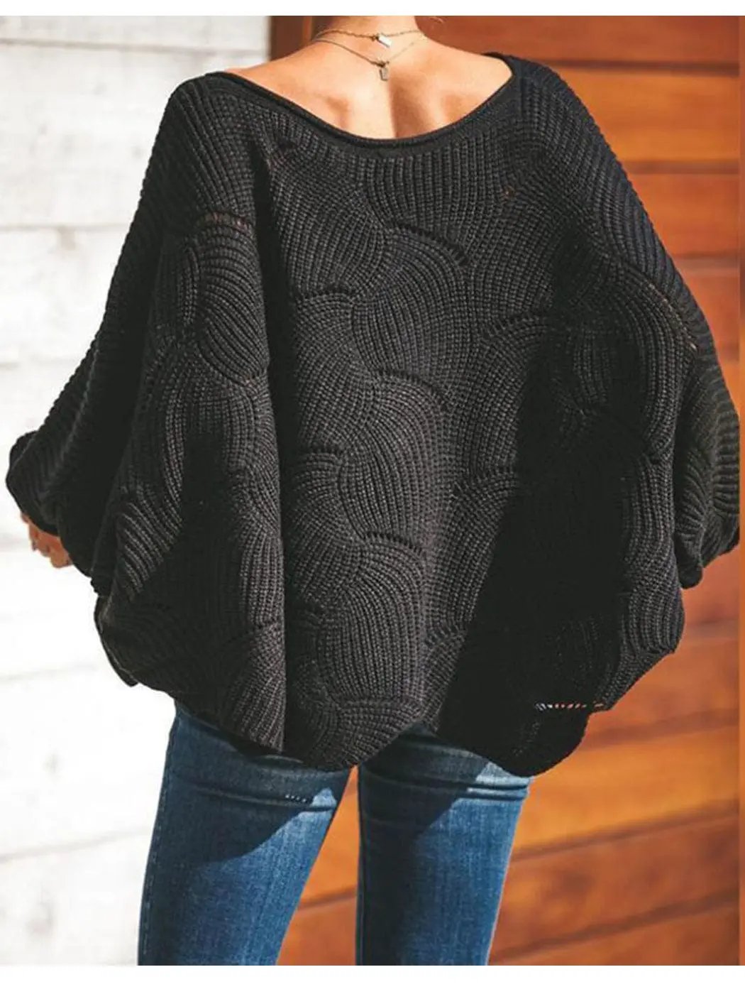 Loose Batwing Sleeve Hollow Out Knit Sweater Top