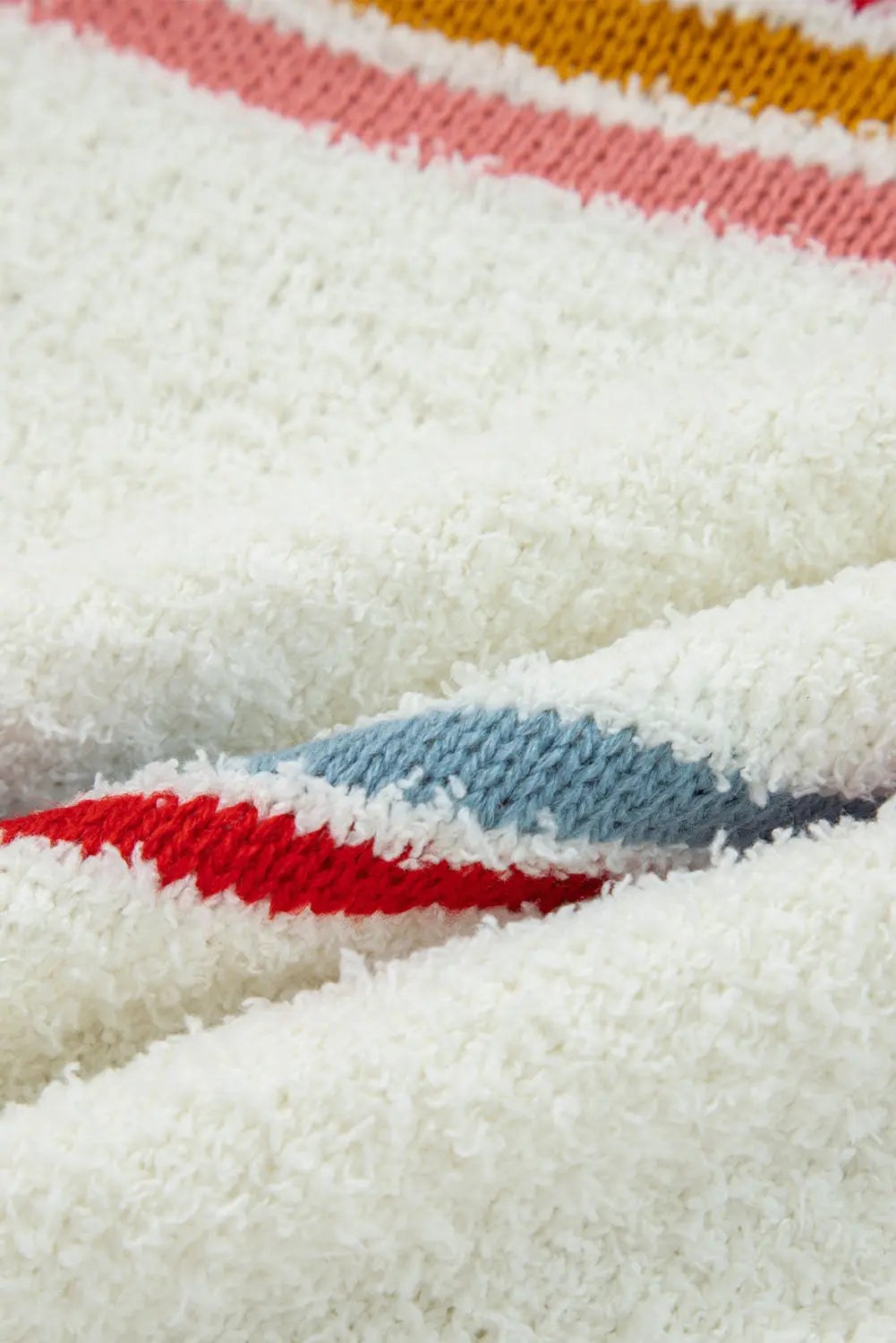 Meet Lumikara accent Hooded Popcorn Sweater—effortless, flattering, and easy to style for everyday life. Stay stylish the whole season in this chic sweater. This cozy popcorn sweater features trendy stripes and ribbed trim. Multicolored striped accents add vibrant, playful energy. The hooded design makes it a more casual look. Versatile sweaters for women on dear-lover.com.