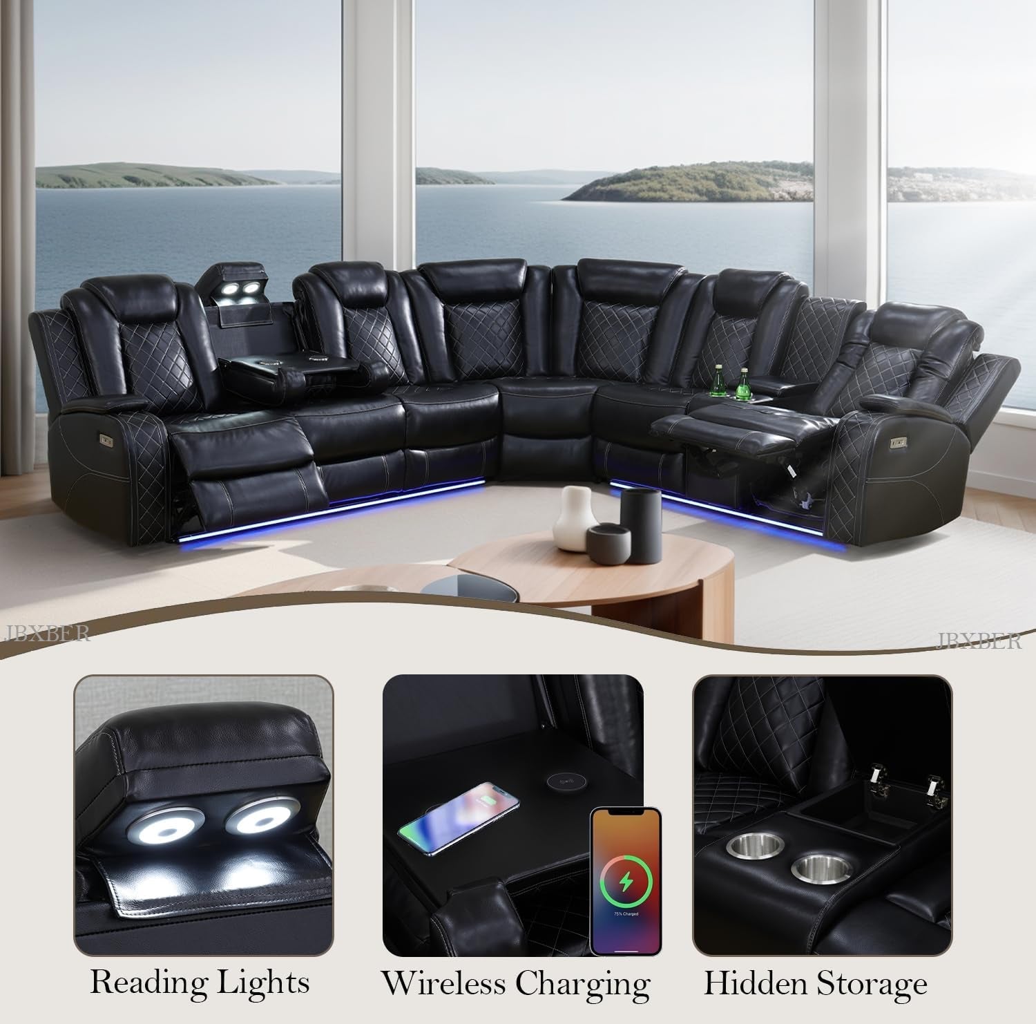 - 【Luxurious Comfort & Premium Leather Upholstery The JBXBER Power Recliner Sectional Sofa Set is crafted with high-quality leather that is not only luxurious but also durable and easy to clean. The thickly padded armrests and plush backrests offer superior comfort for lounging. Ideal for your living room, this sectional couch delivers both style and comfort for hours of relaxation