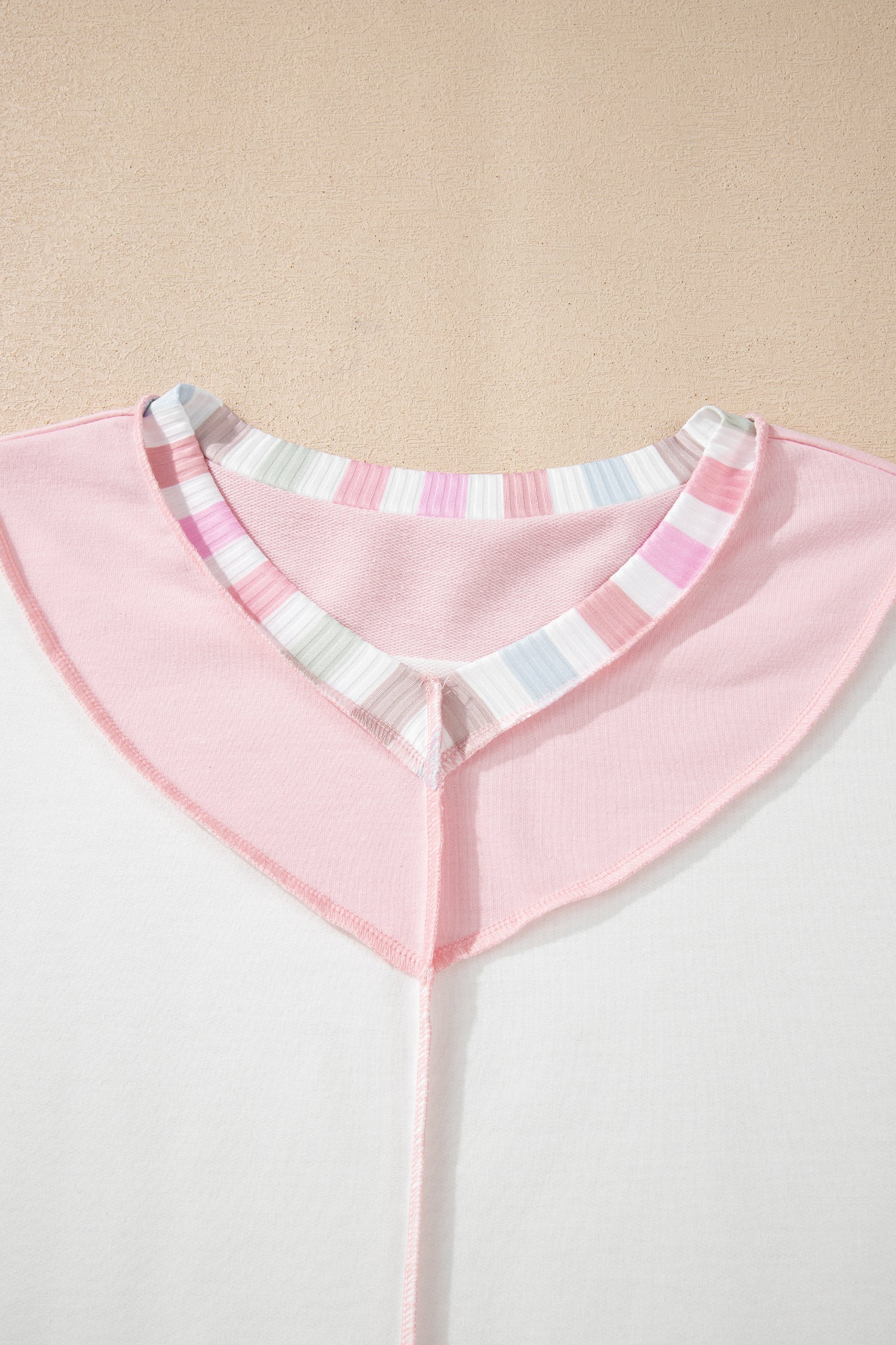 Meet Promise Color Block Loose Long Sleeve Top—effortless, flattering, and easy to style for everyday life. Elevate your casual wardrobe with this new arrival top. The unique patchwork features vibrant stripes and a color block design. A loose pullover top with v neckline and playful long sleeves. This versatile top pairs effortlessly with your favorite jeans or skirts. Shop now and redefine your casual style with our long sleeve tops .