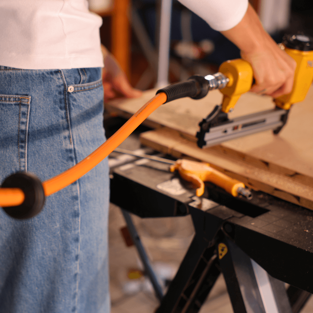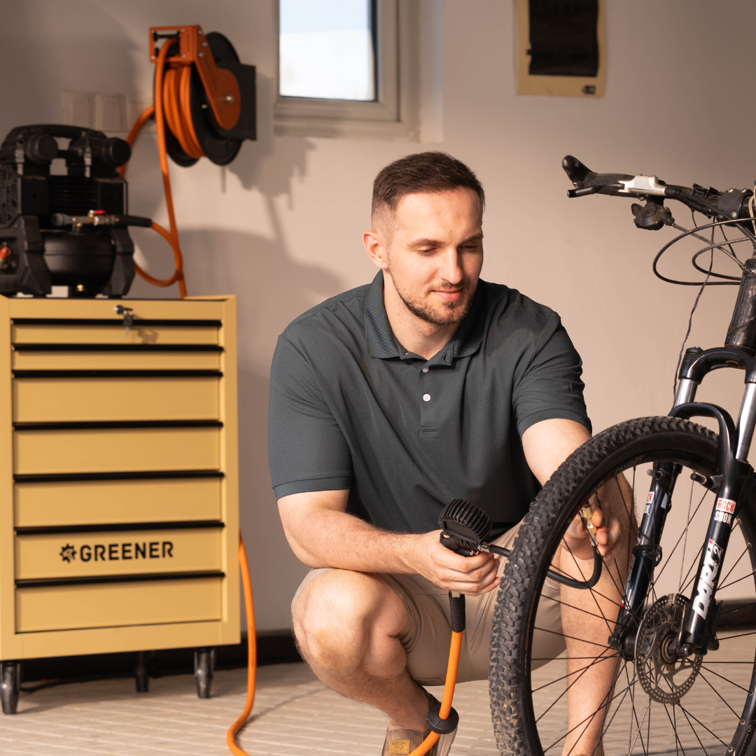 Giraffe Tools air compressor hose reel has a professional-grade all-steel construction, corrosion-resistant powder coat finish for long life and durability.