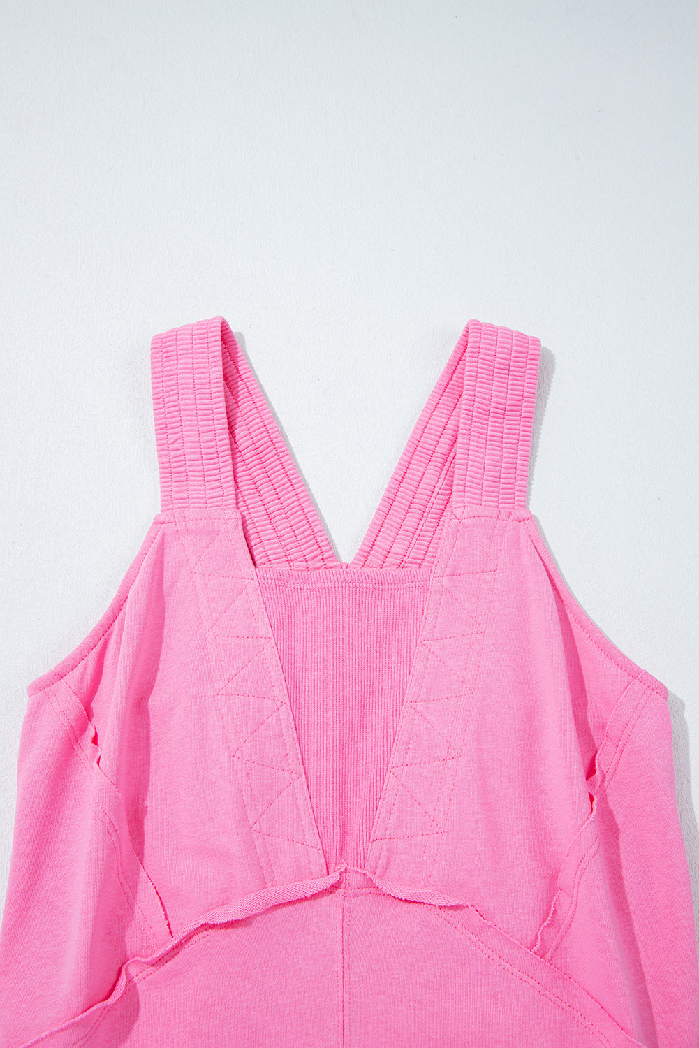 Meet Scarlett Wide Leg Loose Jumpsuit—effortless, flattering, and easy to style for everyday life. This pink jumpsuit is chic and comfy in style. Designed with a mineral wash and terry knit material. This jumpsuit features a relaxed fit, front pockets and a racerback design. This sleeveless jumpsuit is a staple perfect for any casual occasion. women’s jumpsuits are hot selling from Dear-Lover brand.