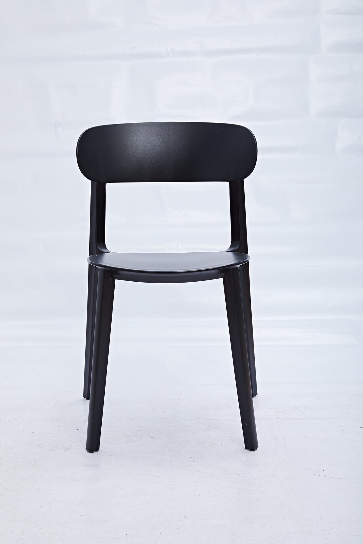 Make your dining room stand out with the set of four black heavy duty plastic dining side chairs. The side chair has no arms so it can easily fit around the table. Can also be used as an accent in living room or bedroom. Complete with solid back, this chair not only looks good but is comfortable. Dining chairs are a great way to compliment your kitchen or dining room but can also be used in the foyer, hallway, or any room you might need extra seating. 30.5-inch h x 20.46-inch w x 18.89-inch d.
