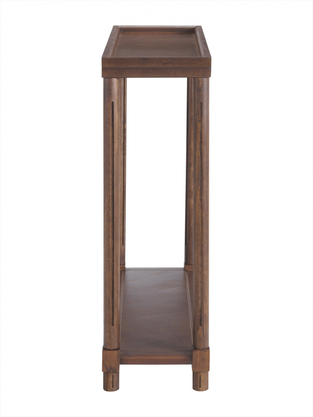Increase your decorating options with this set of two 24-inch brown wood rectangular end tables with shelf that will enhance your space. This pair makes the ideal companion for flanking the sofa or bed and can be used together or separately as you choose. The purposefully distressed finish gives these solid wood tables an authentically rustic feel. Includes a single shelf for handy storage or display space. This versatile table set is a great accent for most any room. 24-inch H x 22-inch W x 8-inch D