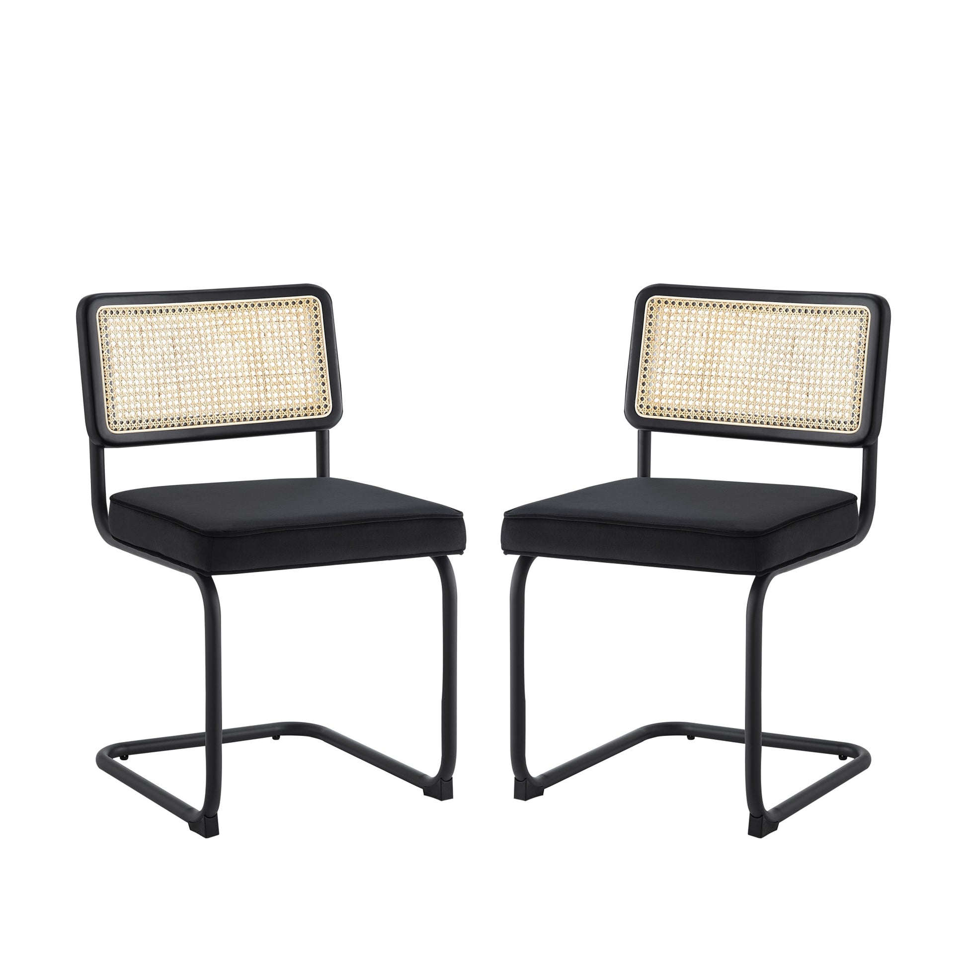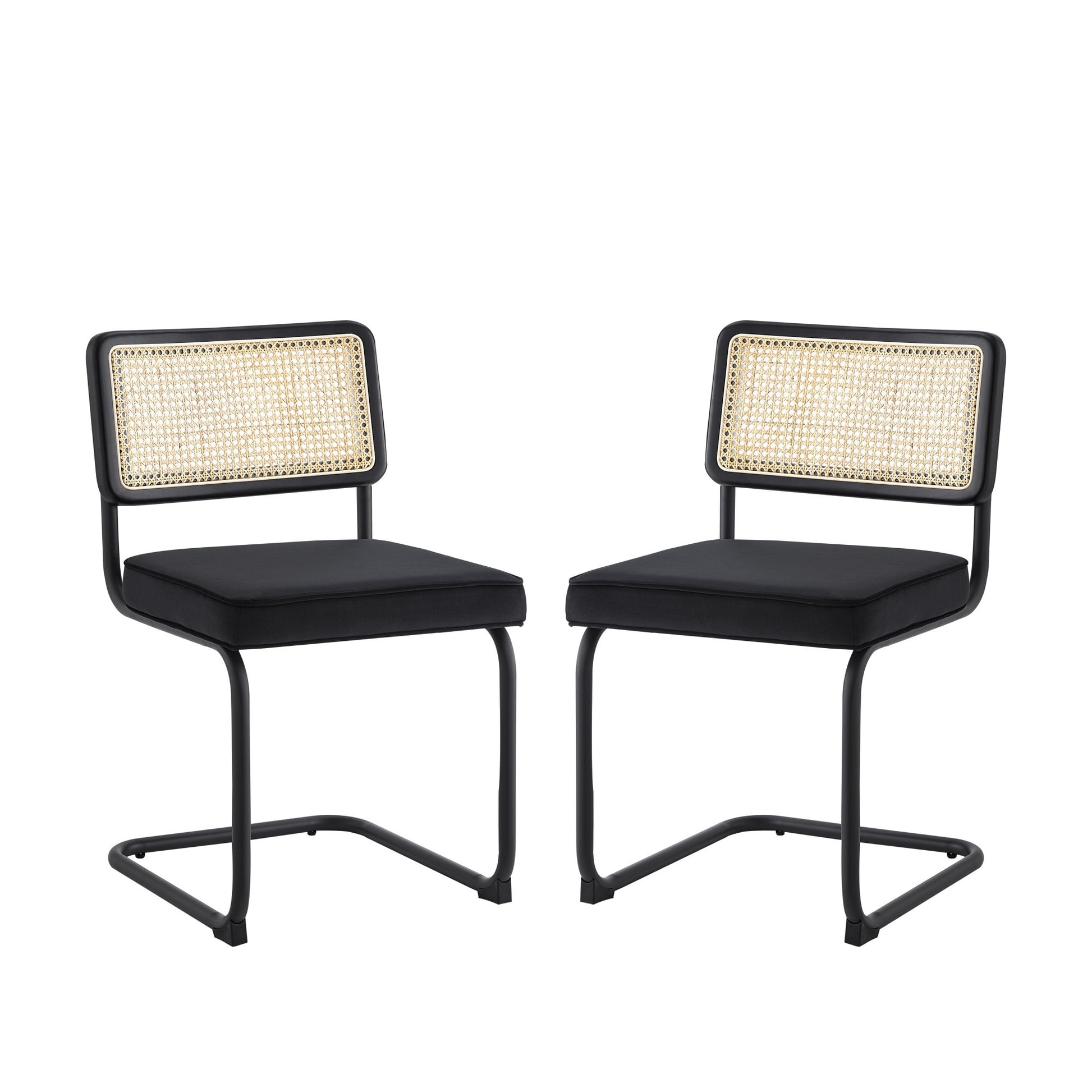 Set of Two Black Upholstered Velvet Dining Side Chairs