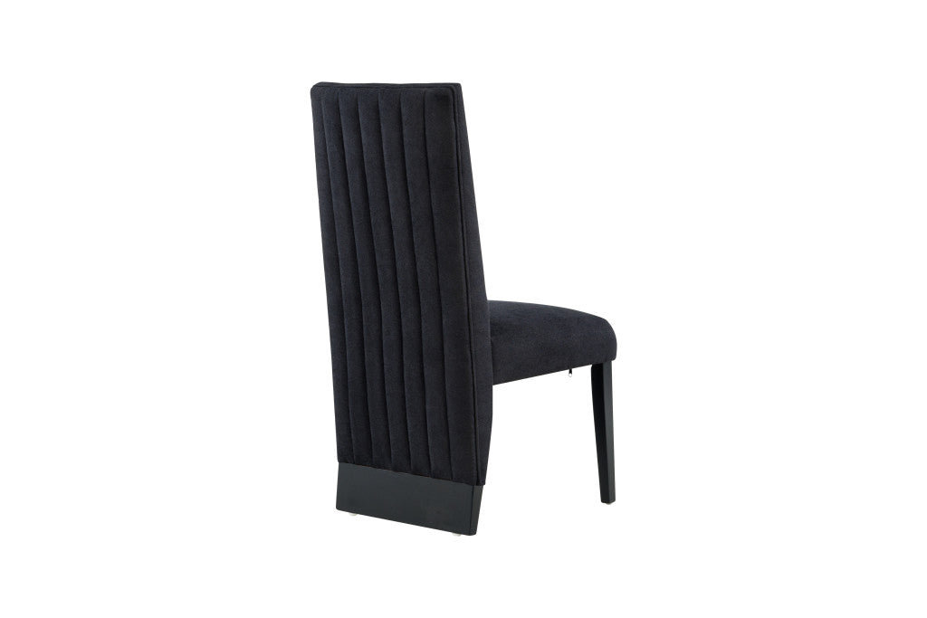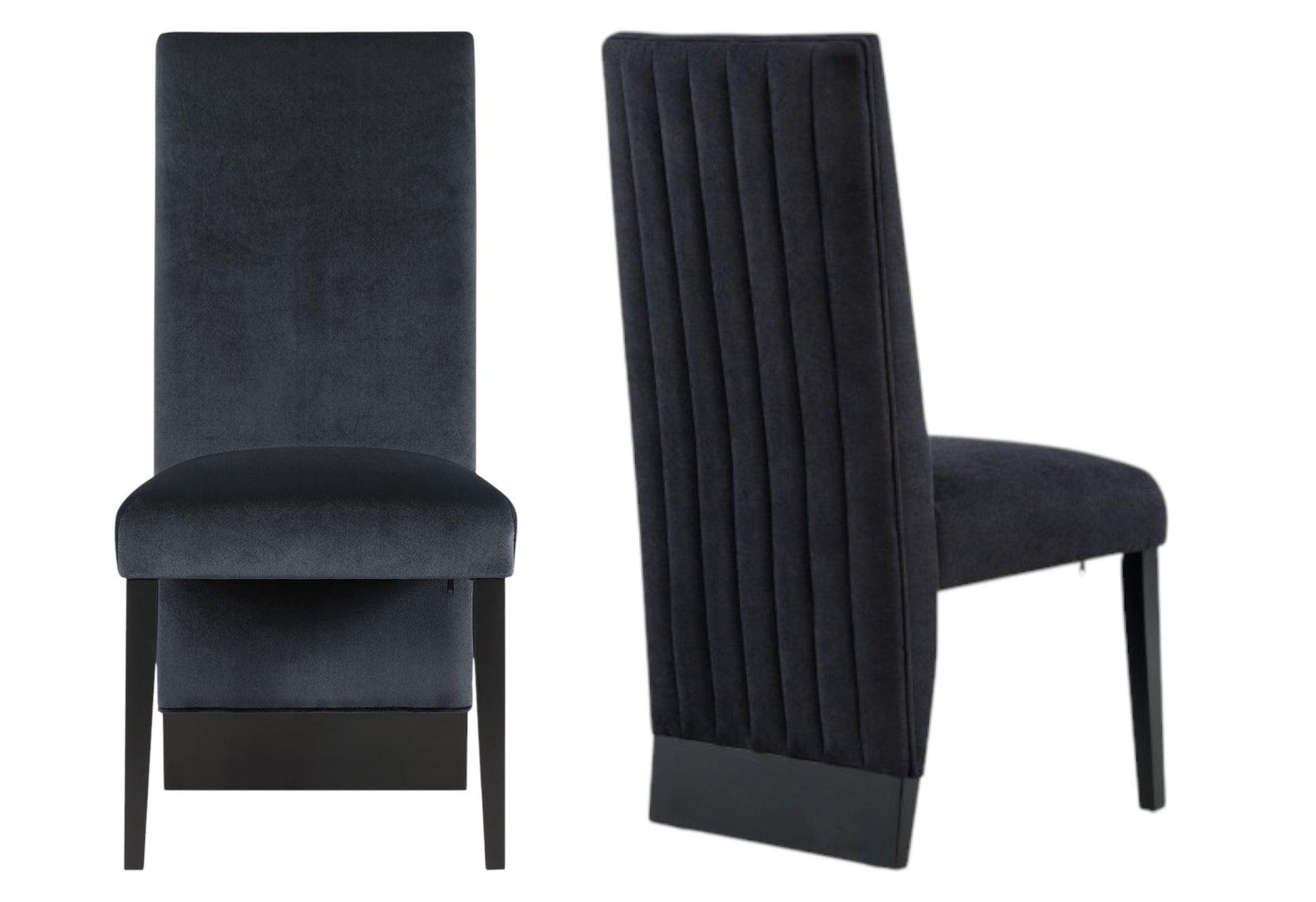 Out with the old and in with the new, this set of two black upholstered velvet dining side chairs can perfectly suit any dining table. This armless chair has a sleek silhouette making it ideal for seating around the table but can also double as an accent chair. The solid back gives this chair its unique style. Dining chairs are a great way to compliment your kitchen or dining room but can also be used in the foyer, hallway, or any room you might need extra seating. 41.7-inch h x 19.5-inch w x 25.7-inch d.