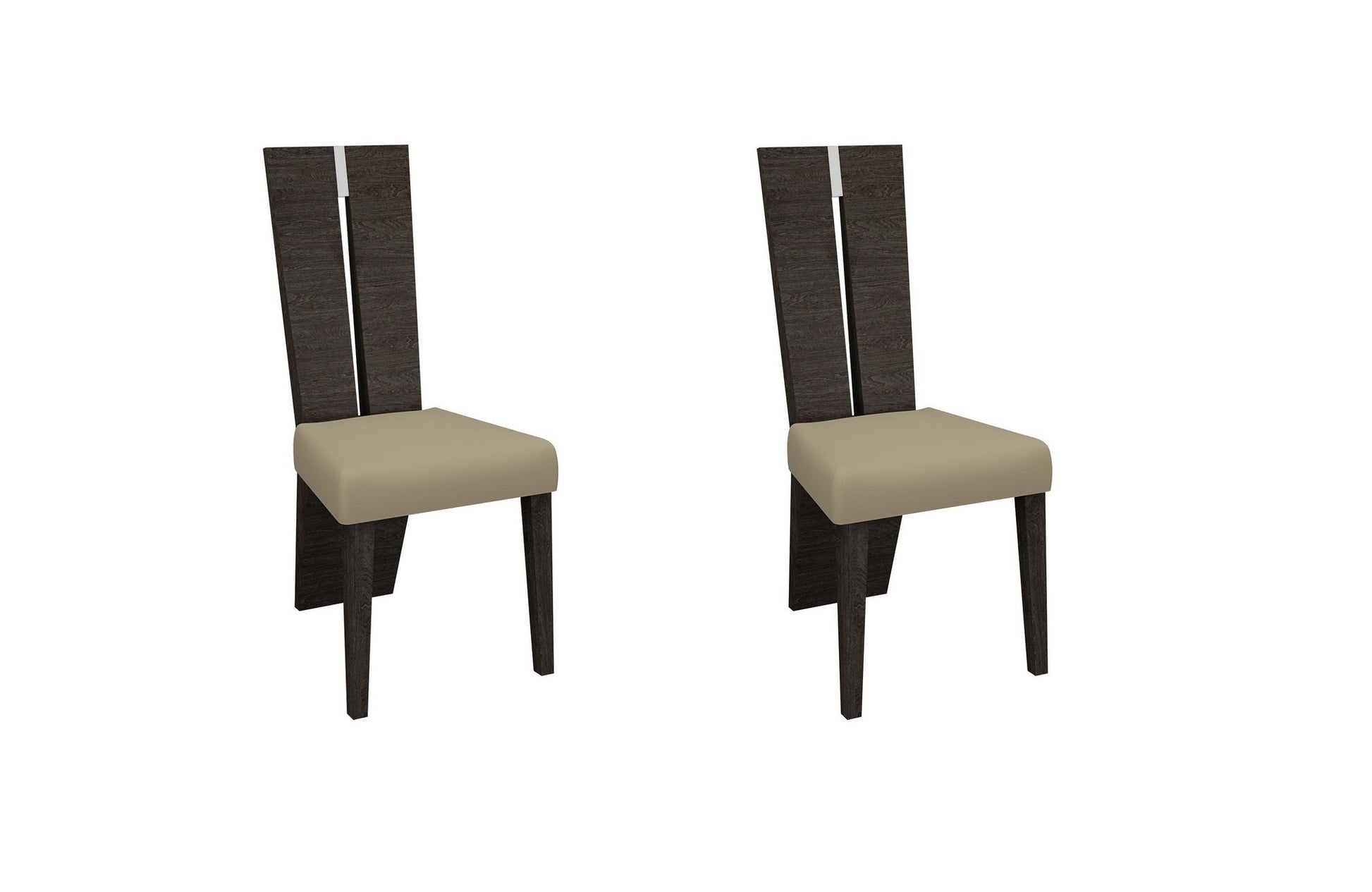 This set of two gray and dark brown upholstered dining side chairs is not only good looking, but it also provides long lasting support. This armless chair has a sleek split back contemporary silhouette making it ideal for seating around the table but can also double as an accent chair. Dining chairs are a great way to compliment your kitchen or dining room but can also be used in the foyer, hallway, or any room you might need extra seating. 42.5-inch H x 19-inch W x 23.5-inch D