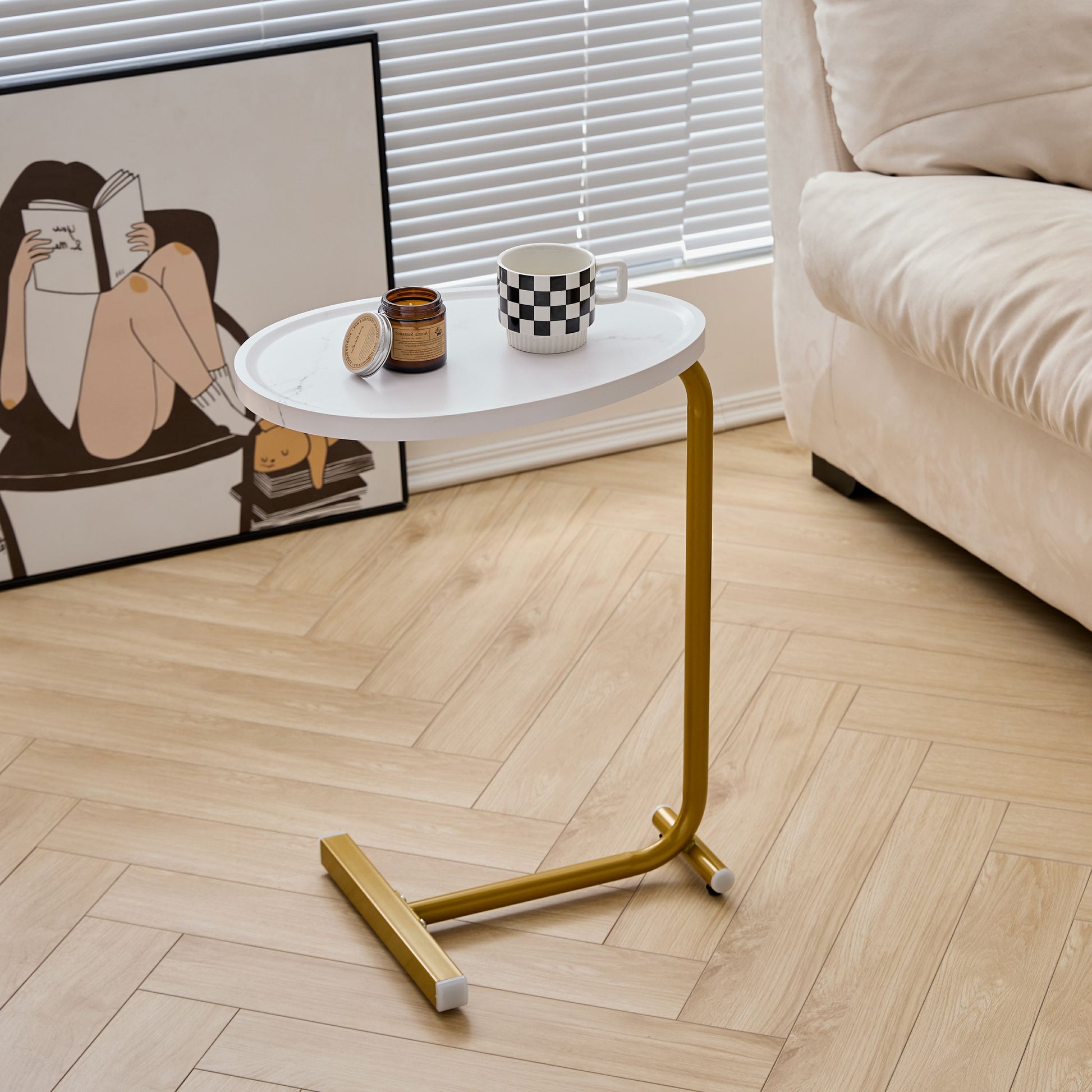 Increase your decorating options with this set of two white and gold faux marble and metal oval end tables that will enhance your space. This pair makes the ideal companion for flanking the sofa or bed and can be used together or separately as you choose. The base of this table is made from metal in a gold color that is a nice contrast to the white faux marble tabletop. Side tables are a great way to flank your sofa, use as an accent next to your favorite chair, or can even be used bedside. You can also use it as an entryway table to hold your keys. 23.62-inch h x 11.80-inch w x 17.72-inch d.