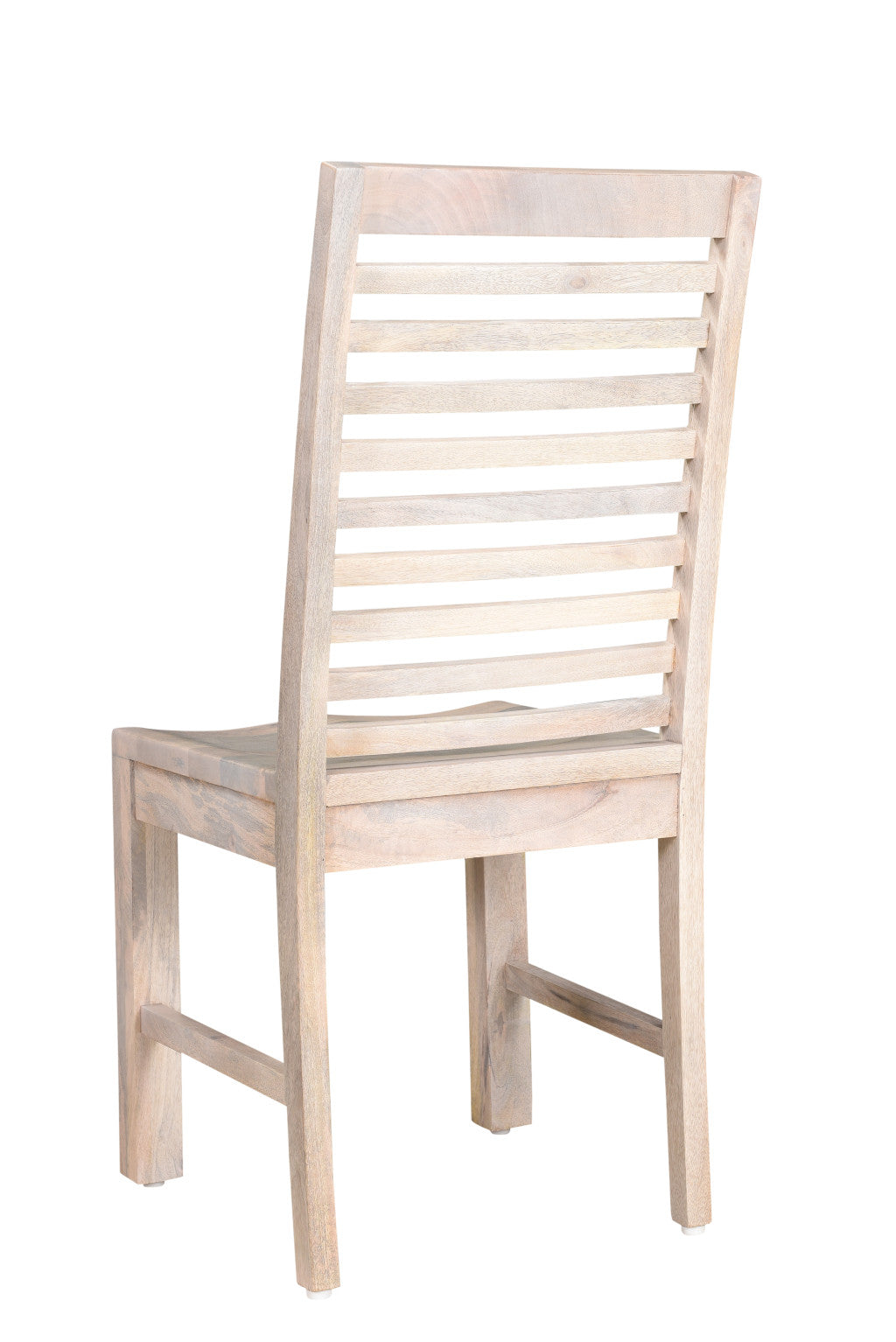 Make your dining experience the best with this set of two white wood ladder back dining side chairs. The side chair has no arms so it can easily fit around the table. Can also be used as an accent in living room or bedroom. The ladder back gives this chair its unique style. Dining chairs are a great way to compliment your kitchen or dining room but can also be used in the foyer, hallway, or any room you might need extra seating. 39.5-inch h x 17.5-inch w x 17.5-inch d.