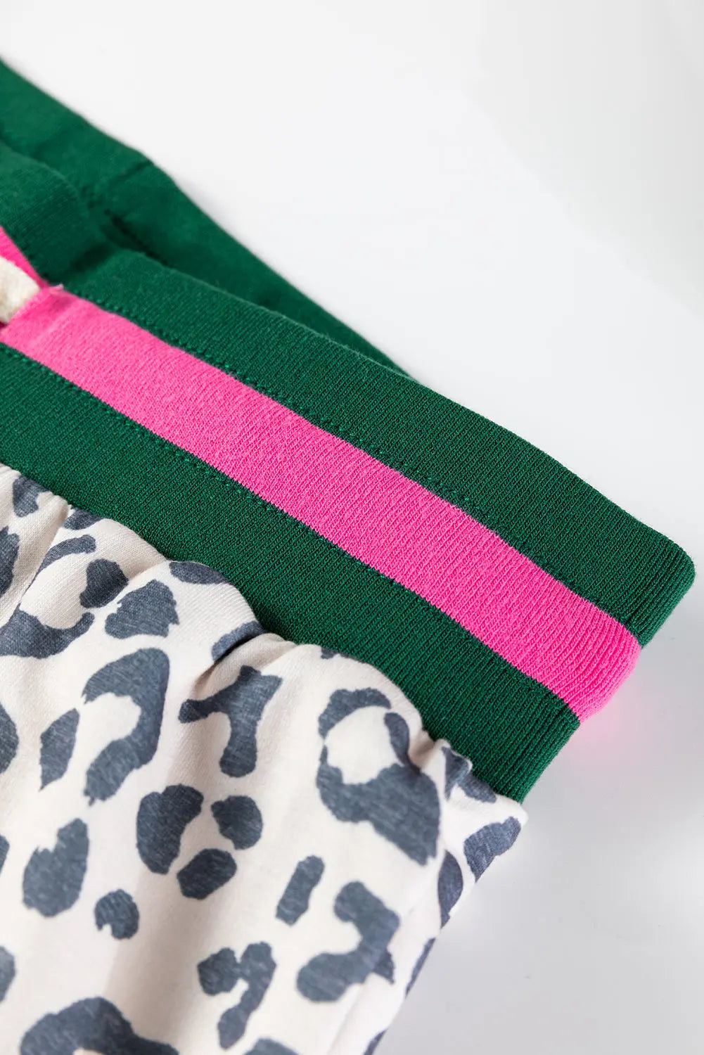 Meet Tagale Long Sleeve Lounge Set—effortless, flattering, and easy to style for everyday life. Experience the perfect mix of comfort and fashion with this set. The 2pcs outfit includes a long sleeve top and drawstring pants. Featuring a stylish leopard pattern and contrast striped details. Made from quality fabric with a medium stretch in a relaxed fit. Buy fashion two piece pant sets at prices from .