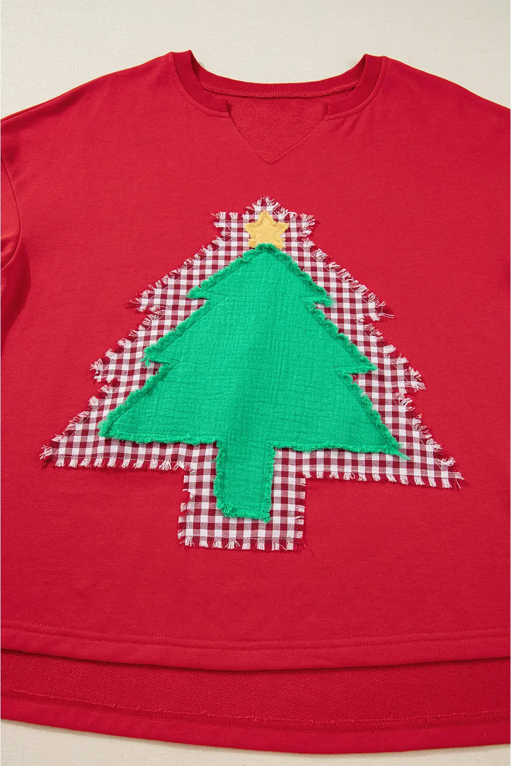 Meet Taraette Patched Drop Shoulder Sweatshirt—effortless, flattering, and easy to style for everyday life. Get you in the festive mood with this new graphic sweatshirt. Featuring double-patterned trees patched on the front. Made of quality cotton-blend fabric, quite soft and cozy to wear. This festive top is a perfect gift for women of all ages. Show your spirit in comfort and style with our custom graphic sweatshirts .