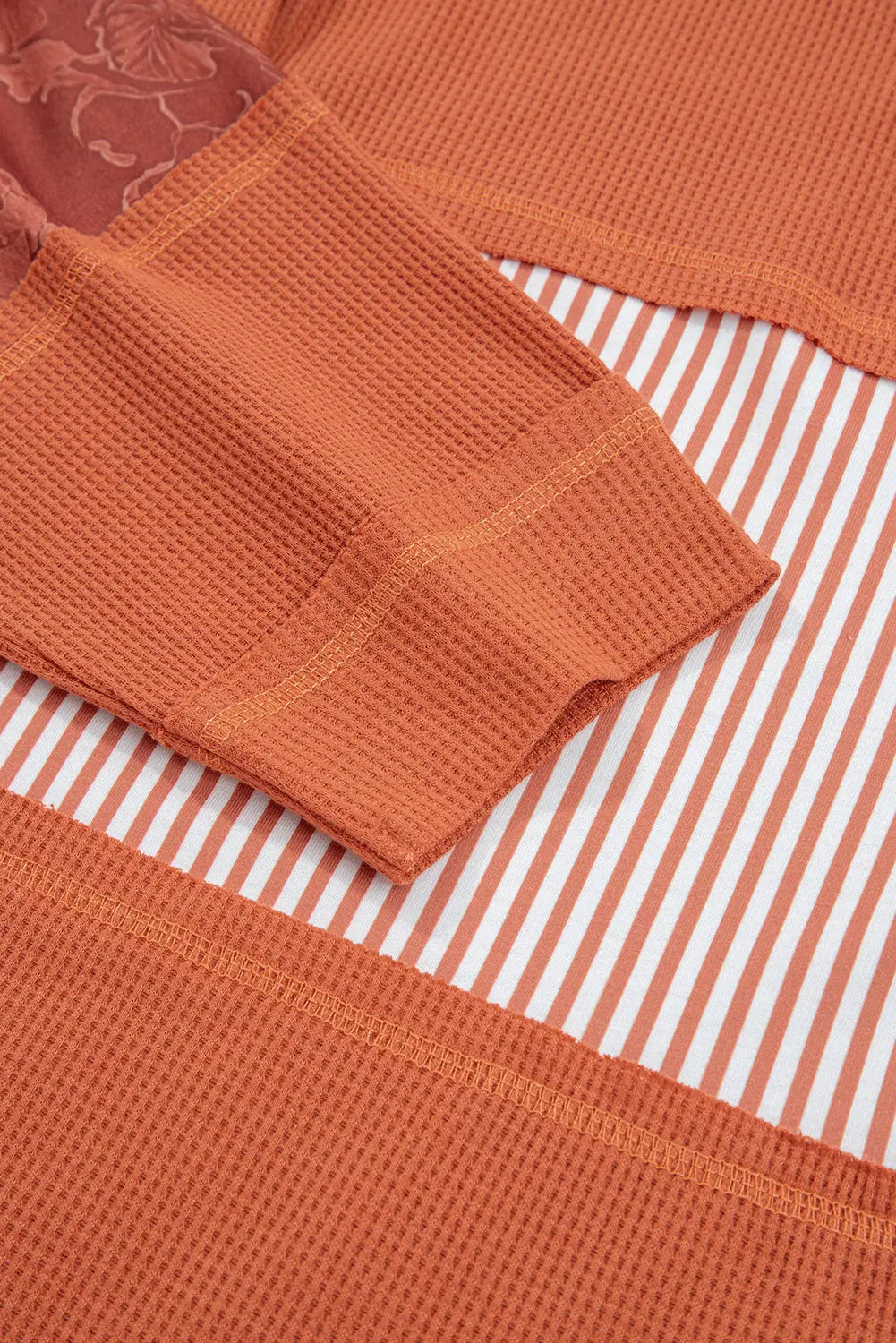 Meet Taytum Patchwork Drawstring Hooded Long Sleeve Top—effortless, flattering, and easy to style for everyday life. Waffle knit texture adds cozy warmth and a stylish casual look. Unique printed patchwork design creates eye-catching streetwear vibes. Adjustable drawstring hood adds function and laid-back flair. Long sleeves offer extra coverage for cool weather. hooded tops for women are casual and fashionable among people.