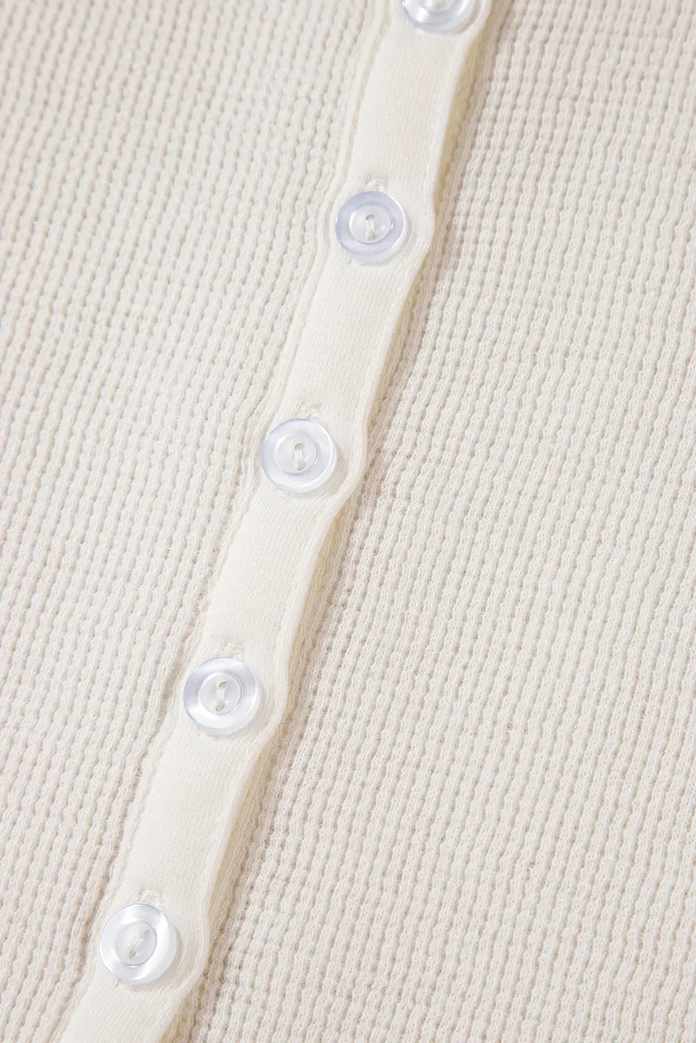 Meet Teresa Color Waffle Half Long Sleeve Top—effortless, flattering, and easy to style for everyday life. The plain top offers a cozy and stylish option for a classic look. The waffle texture adds depth and a unique feel to this top. The half button front provides a modern twist. This top pairs well with various bottoms for a polished outfit. long sleeve tops offer versatility for different weather conditions.
